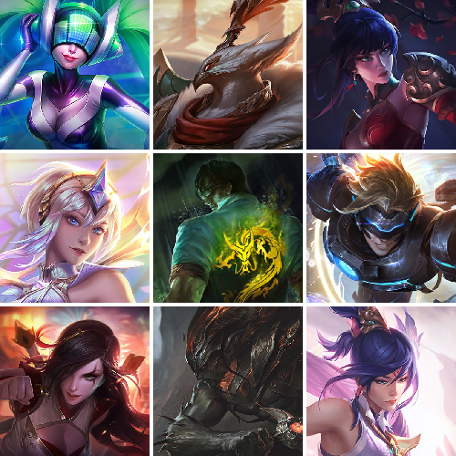 锼无忧❤1000皮蓝黑龙瞎斩星剑圣创战纪庆典凤凰海克斯安妮全套猴年鸡年元素光辉情人薇恩黑夜亚索敲钟牛