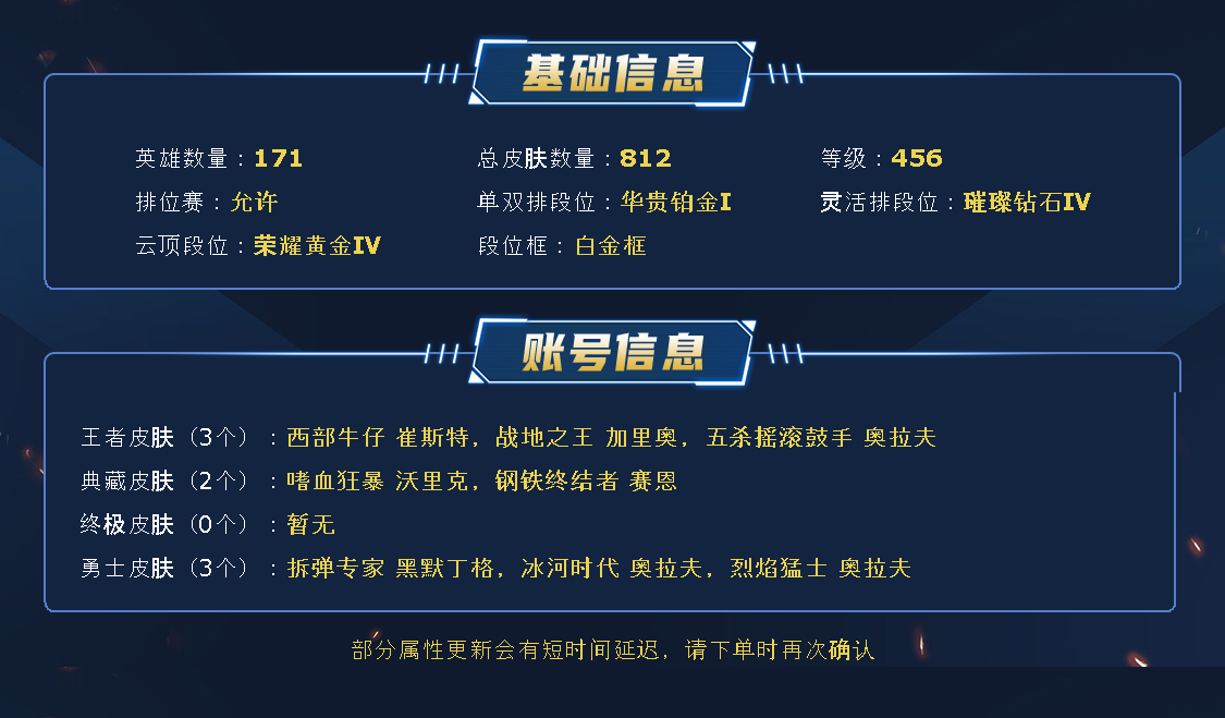 - 云顶段位: 荣耀黄金Ⅳ