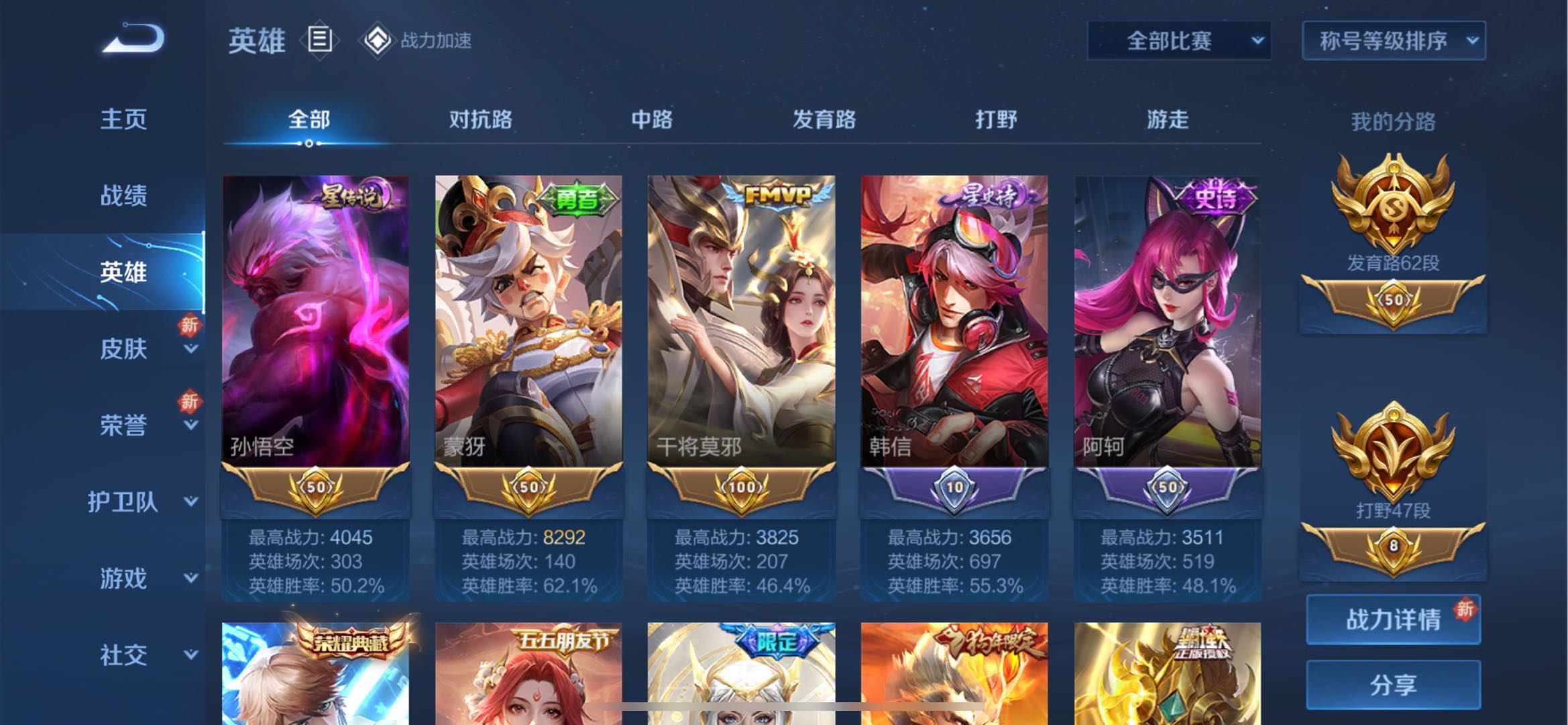 1.所有英雄均可排位,皮肤超多,V10皮肤共享,带妹上分超级号,喜欢的可以添加收藏,祝您有一个愉快的游戏体验。
