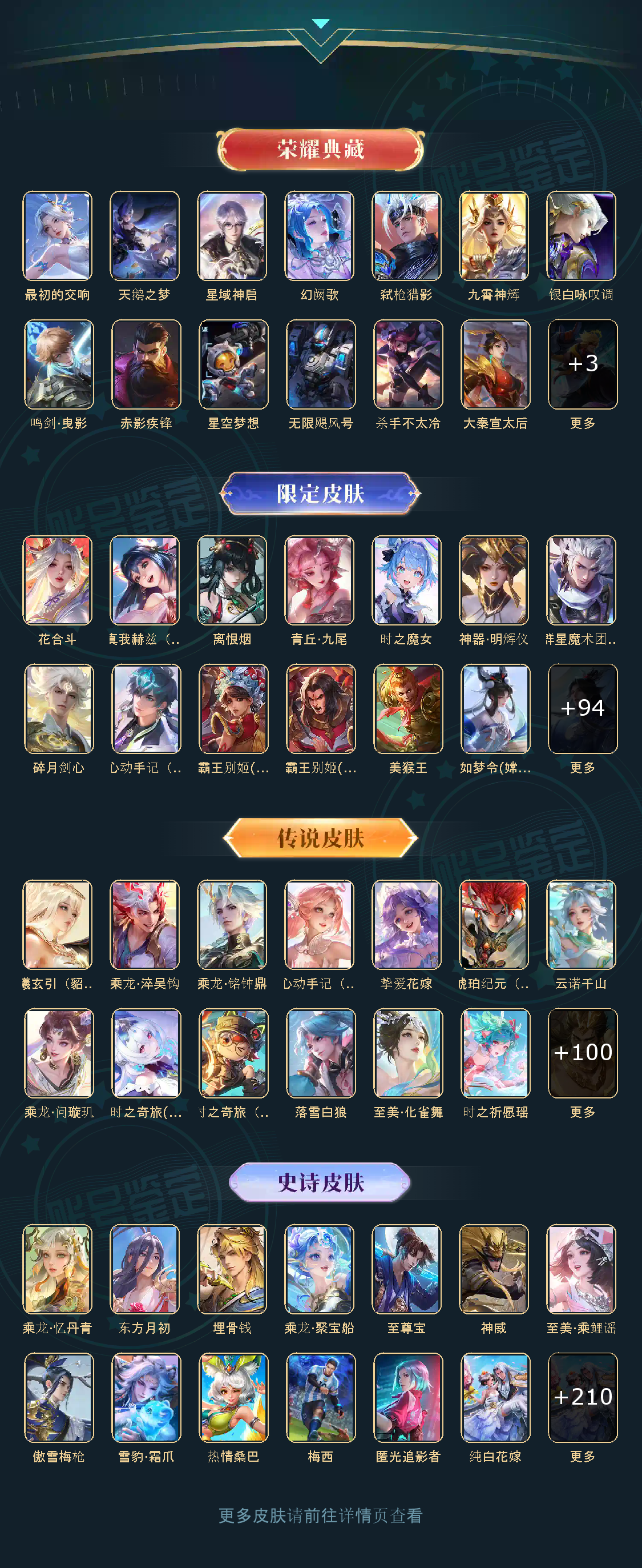 【苹果】 满典藏✨660皮✨八国服✨在榜省级鱼✨78段中路✨67段游走路✨满无双✨龙年全套✨传奇魔方✨守约新皮