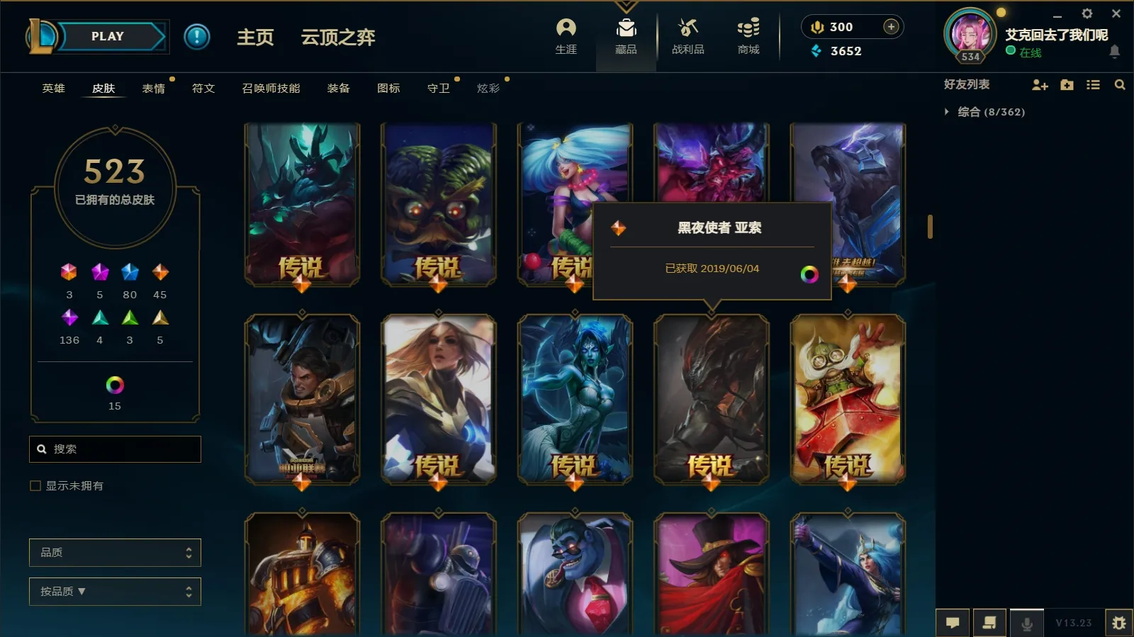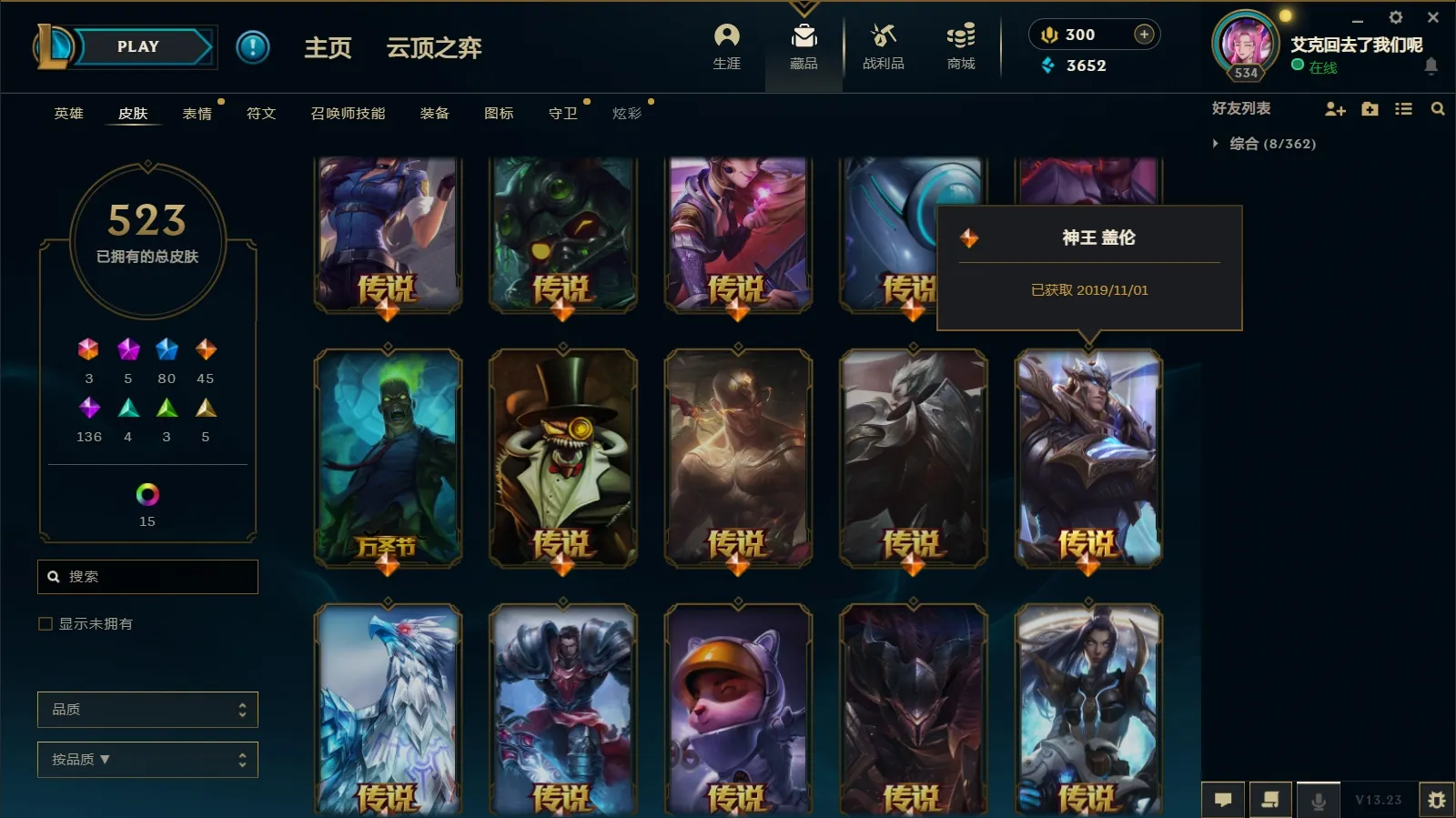 800皮肤〓粉龙瞎〓摄魂薇恩灰烬潘森〓冠军锐雯黑夜亚索〓防爆男枪神王套〓沄顶神话莲华永恩