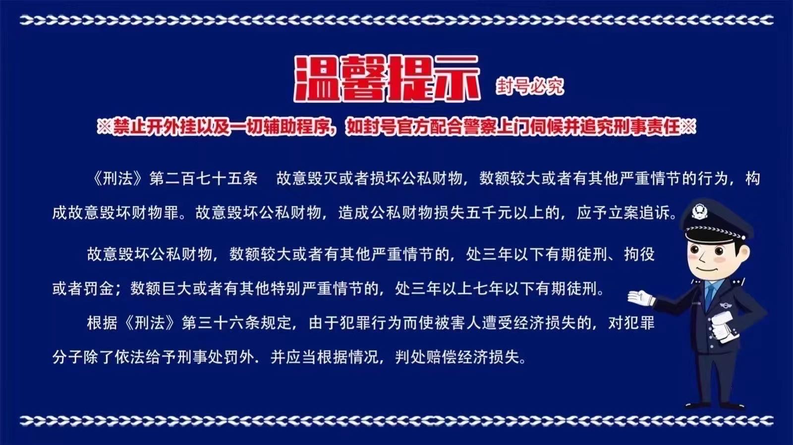 温馨提示:禁止使用外挂 为保护未成年身心健康,本平台不对未成年人提供服务