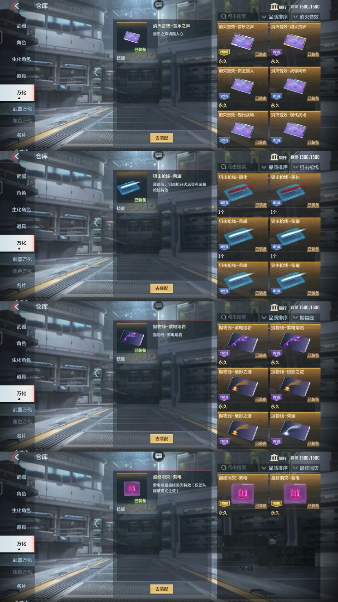 🔥6消灭音效(音乐之声*3+焰火贺岁+赏金猎人+现代战场*2+战壕风)、16狙击枪线(2黑化+4荣耀+1诸神黄昏+9螺旋烟雾)