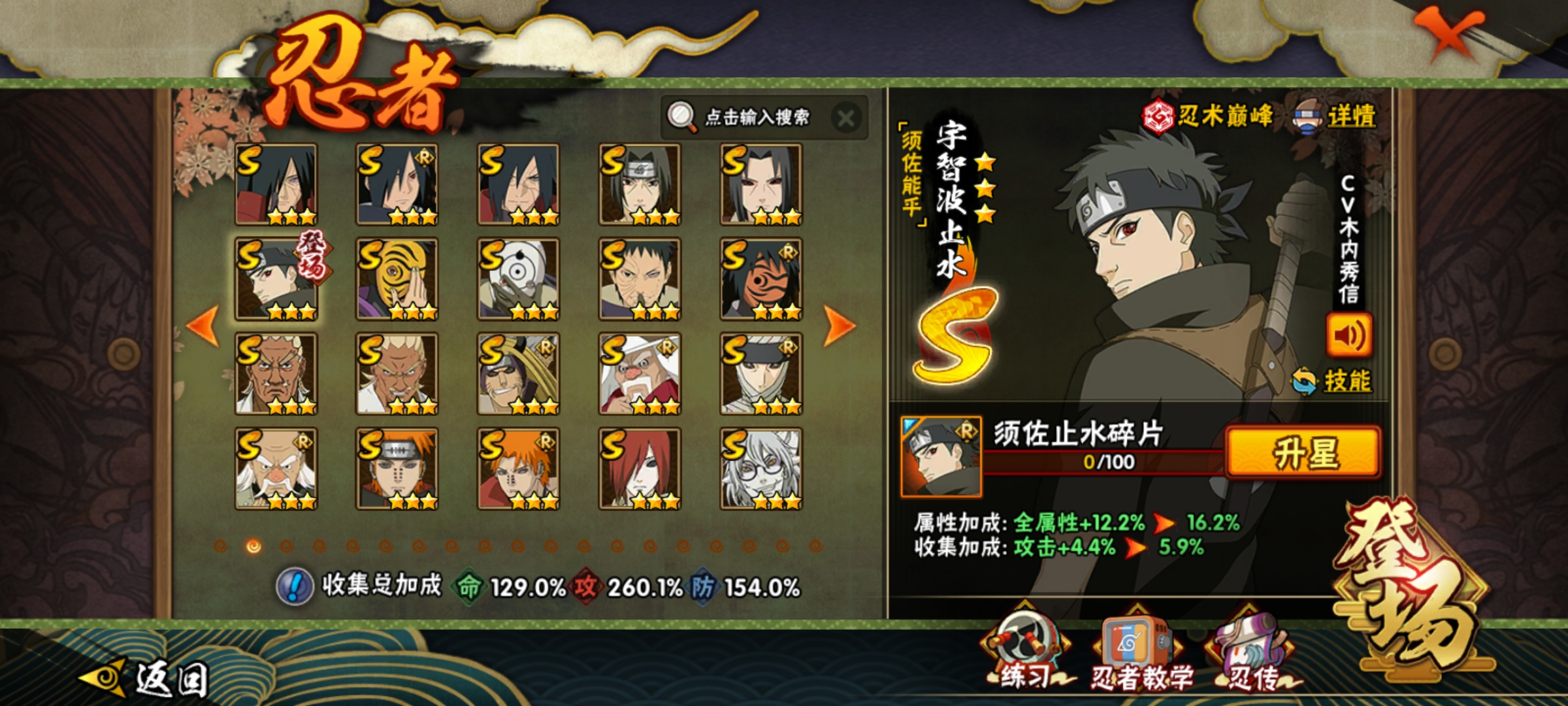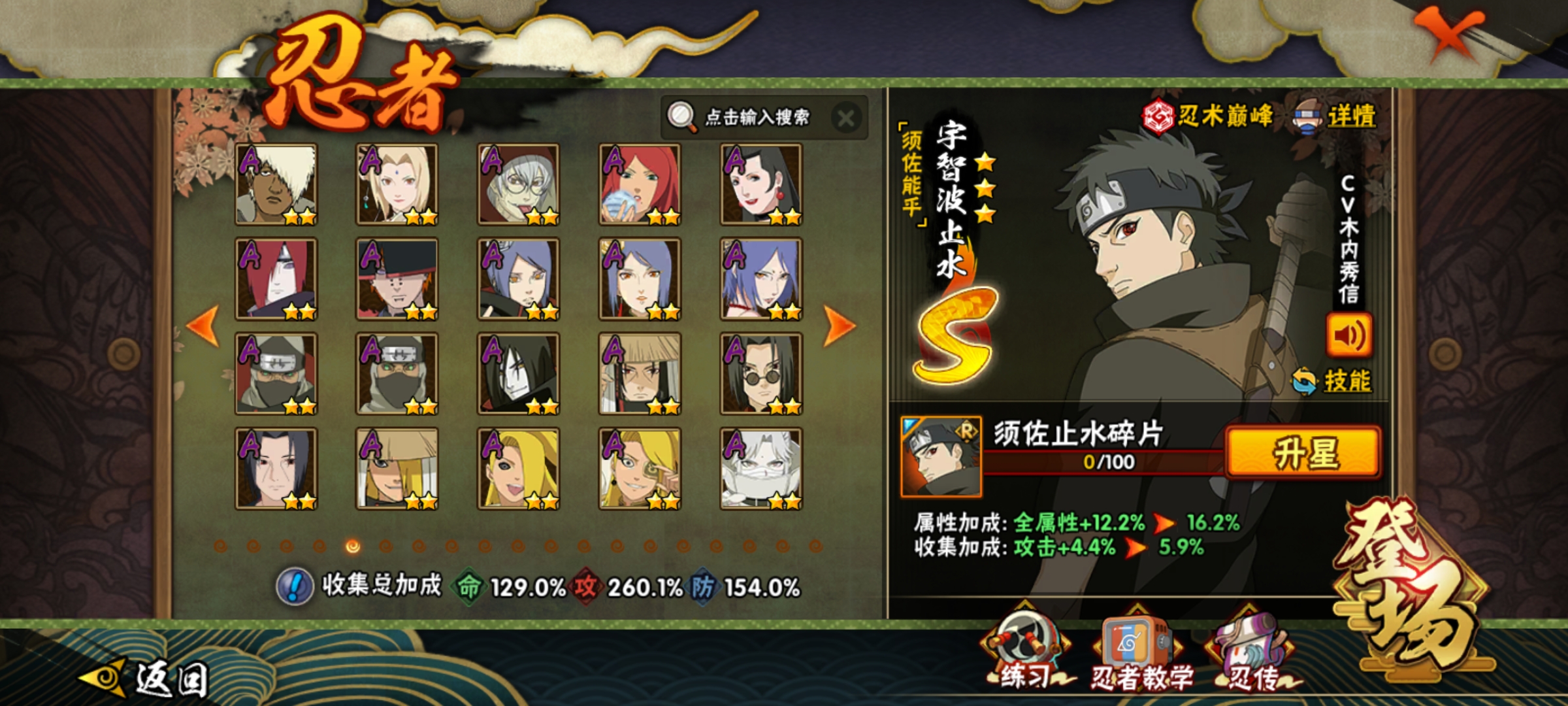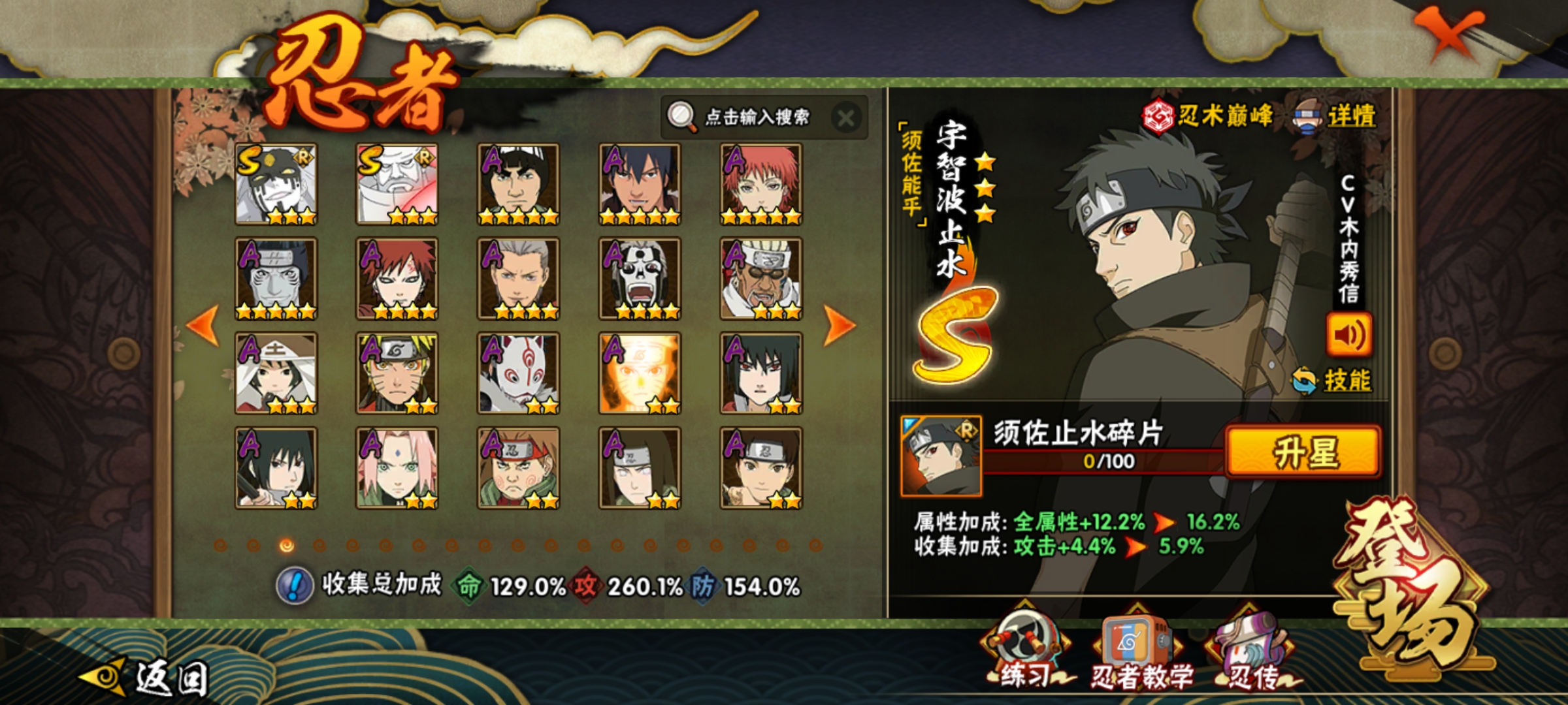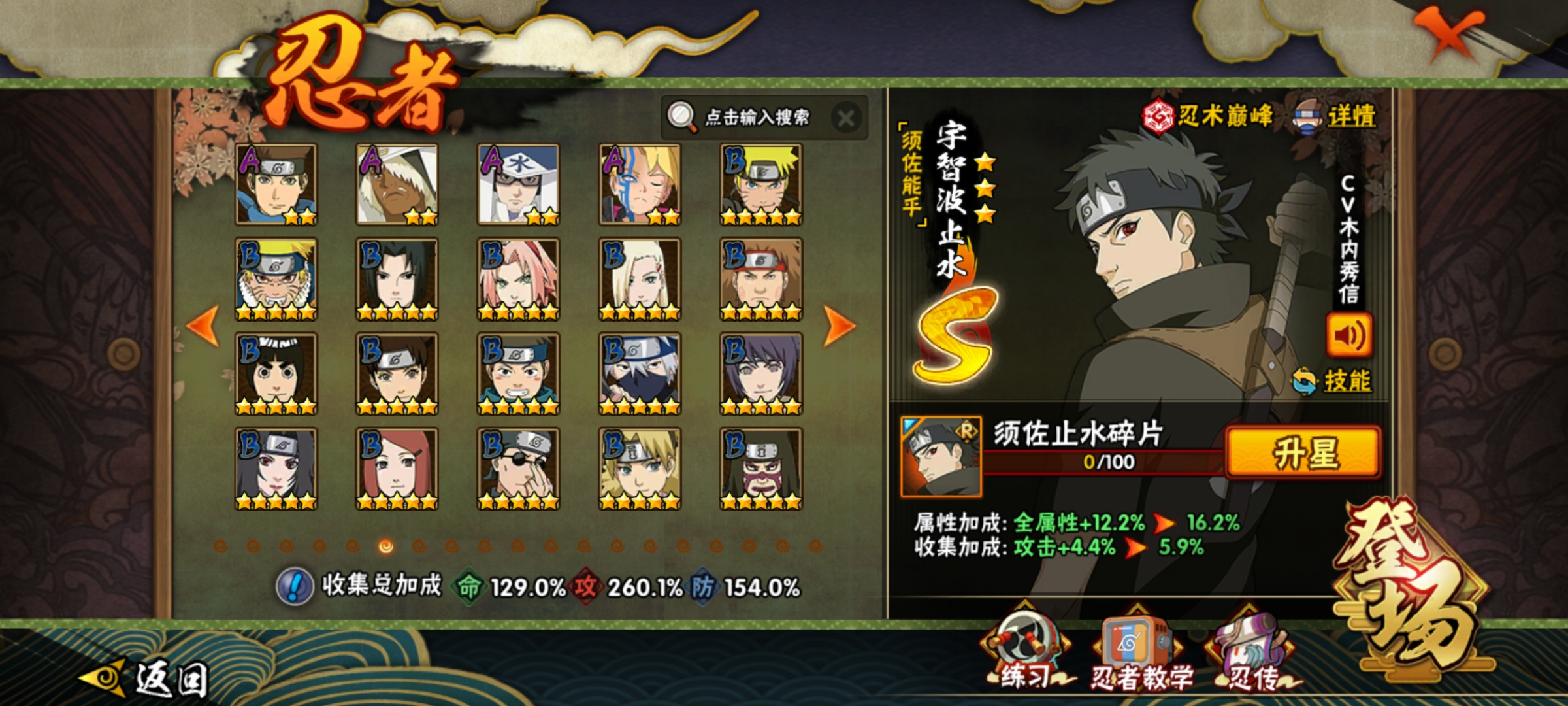 A级忍者(49个) : 宇智波鼬,飞段「死司凭血」,角都,飞段,我爱罗「疾风传」 ,波风水门「新春限定」,迪达拉,蝎,迈特凯,猿飞阿斯玛,干柿鬼鲛,宇智波止水,小南,旗木卡卡西「万花筒写轮眼J都「地怨虞」,漩涡鸣人「仙人模式」奇拉比,宇智波佐助「万花筒写轮眼照美冥「五代目水影」,春野樱「百豪」 ,大蛇丸「晓J秋道丁次「忍界大战」,我爱罗I忍界大战」,药师兜「半蛇斗篷」,千代「近松十人卫」,漩涡鸣人「九尾查克拉」,猿飞木叶丸「博人传」,旗木卡卡西「忍界大战」,小南「新春限定」,迪达拉「秽 土转生」,宇智波佐助「须佐能乎」,黑土「博人传」,天天「忍界大战」将近300忍者宇智波波止水「新春限定」奇拉比「忍界大战」,波风水门「青年」,「忍者之路」神秘面具男,不风,达鲁伊「博人传」,迪达拉「新春限定」,艾「青年」佩恩六道「漂泊浪客」,长门「青年」卑留呼,纲手「侠隐江湖J长十郎「六代目 水影」我爱罗新春限定」 ,日向宁次「忍界大战] ,小南「漂 泊浪客体验328忍者648忍者198忍者98忍者点券忍者直购忍者漂泊小南漂泊扉间漂泊佩恩漂泊再不斩泳装卡卡西新春小南侠影纲手侠影照美冥青年水门忍战我爱罗新春我爱罗新春卡卡西新春鼬新春水门新春止水新春小南新春迪达拉不缘不风忍界大战宁次面麻卑留呼桀骜阿斯玛鲛肌融合九喇嘛鸣人忍战小樱百豪纲手百豪小樱死门凯百战水门百战大蛇丸秽土三代秽土扉间秽土二代初代柱间秽土初代创立柱间秽土斑秽土解斑创立斑面具男神秘面具男雷影红叶之刃面具男红面具鲛肌融合鬼鲛桀骜阿斯玛秽土长门忍战大野木无金式仙人兜泳装卡卡西泳装纲手泳装萨姆伊泳装鼬夏日鼬乌鸦宇智波鼬夏日限定夏日泳装鼬永恒佐助最终章雏田黑婚纱雏田日向雏田最终章卡卡西幻之真容辛牙真容卡卡西旗木卡卡西幻之真容忍战雷影断臂雷影雷影忍界大战忍战艾桃博桃式显现博人忍战小李忍战雷影须佐止水未购买百战佩恩冬日夕日红全忍者全s忍者全高招忍者全点券忍者全忍法帖忍者百战佩恩团本号带团号须佐卡卡西须佐能乎体验卡新春全系列百战全系列泳装全系列漂泊全系列全通灵全密卷全忍者新春大蛇丸绯流琥蝎体验卡自来也传说中的三忍传说自来也传说中的三忍自来也[传说中的三忍六尾鸣人暴怒六尾鸣人暴怒鸣人忍漩涡鸣人「暴怒·第六尾」夏日黑土夏日香燐金身水门金身波风水门九喇嘛水门九喇嘛波风水门阴金水门死水波风水门「九喇嘛连结」五影会谈带土五影会谈斑五影带土五影宇智波斑机械鸣人「初始形态」宇智波佐助「侠隐江湖」侠影佐助 大野木「侠隐江湖」侠影江湖大野木宇智波斑「五影会谈」秽土巳月「仙人模式」妖怪纲手黑绝「青春爆炸」迈特凯全忍者全S54S十周年鸣佐宿命连接漩涡鸣人·宇智波佐助宇智波带土「十尾人柱力」十尾带土十尾人柱力带土宇智波斑「神驹佑将」🔥旗木卡卡西「神威对决」神驹斑神驹阿诗玛猿飞阿诗玛「神驹佑将」