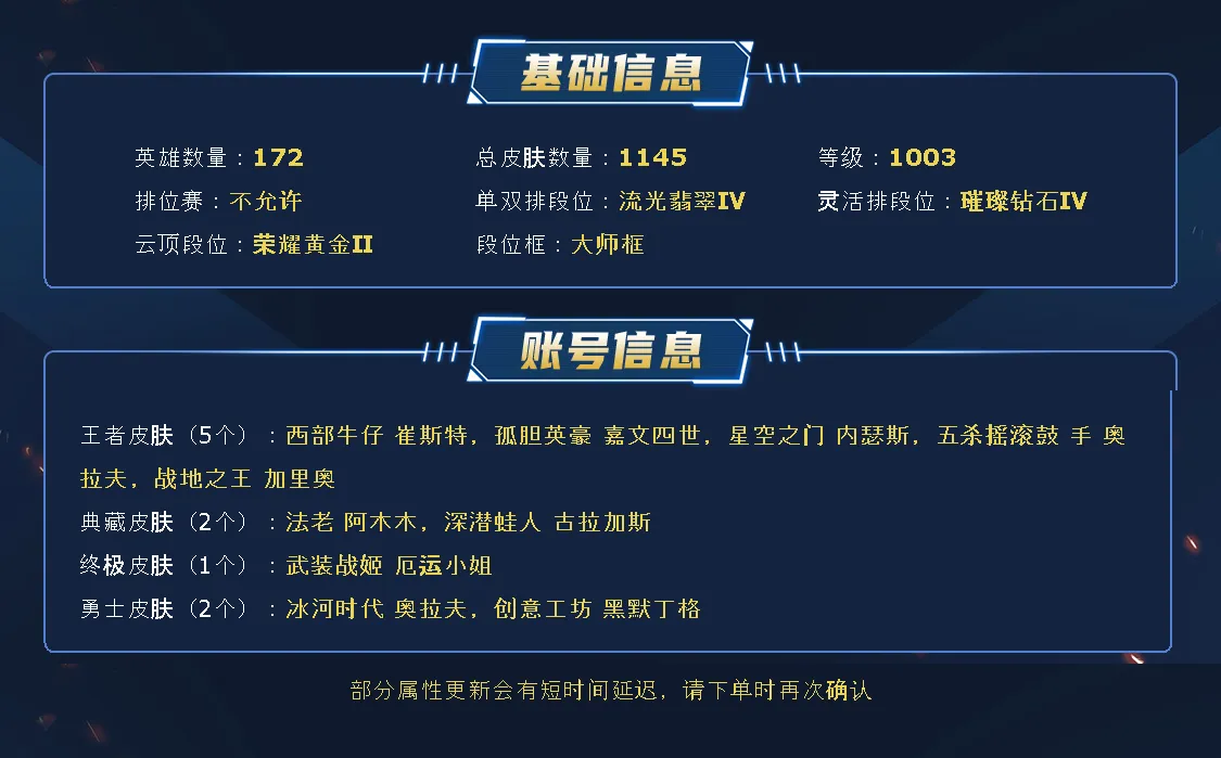~~喜欢记得收藏~~可排位~~1200皮全英雄丨534原皮301炫彩丨50神话/至臻/海克斯丨灵魂莲华套丨玉剑剑姬丨律动格温丨破败锤石丨替父从军丨鼠年瑟提丨甜心格温丨女帝卡特丨KDA卡莎丨羊年金克斯丨IG剑姬刀妹丨福牛厄斐琉斯丨FPX锤石李青丨神龙尊者李青卡莎亚索~~租之前尽量查一下游戏ID,确保段位是您需要的,避免浪费您的时间~~请勿挂机逃跑故意送人头,谢谢合作,谢谢~~