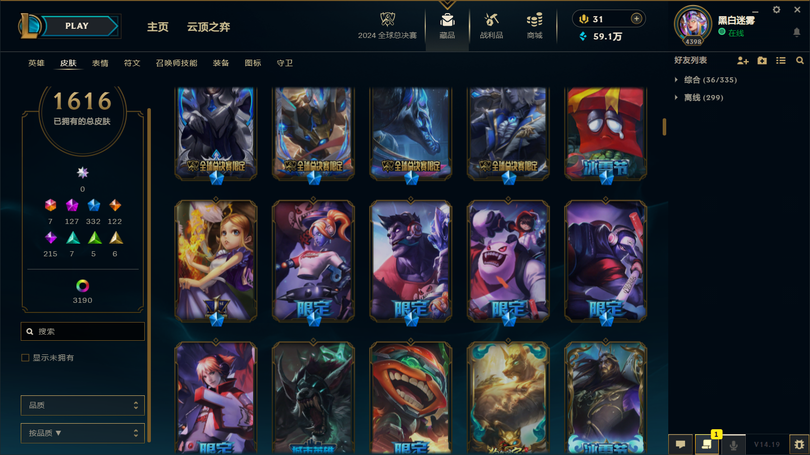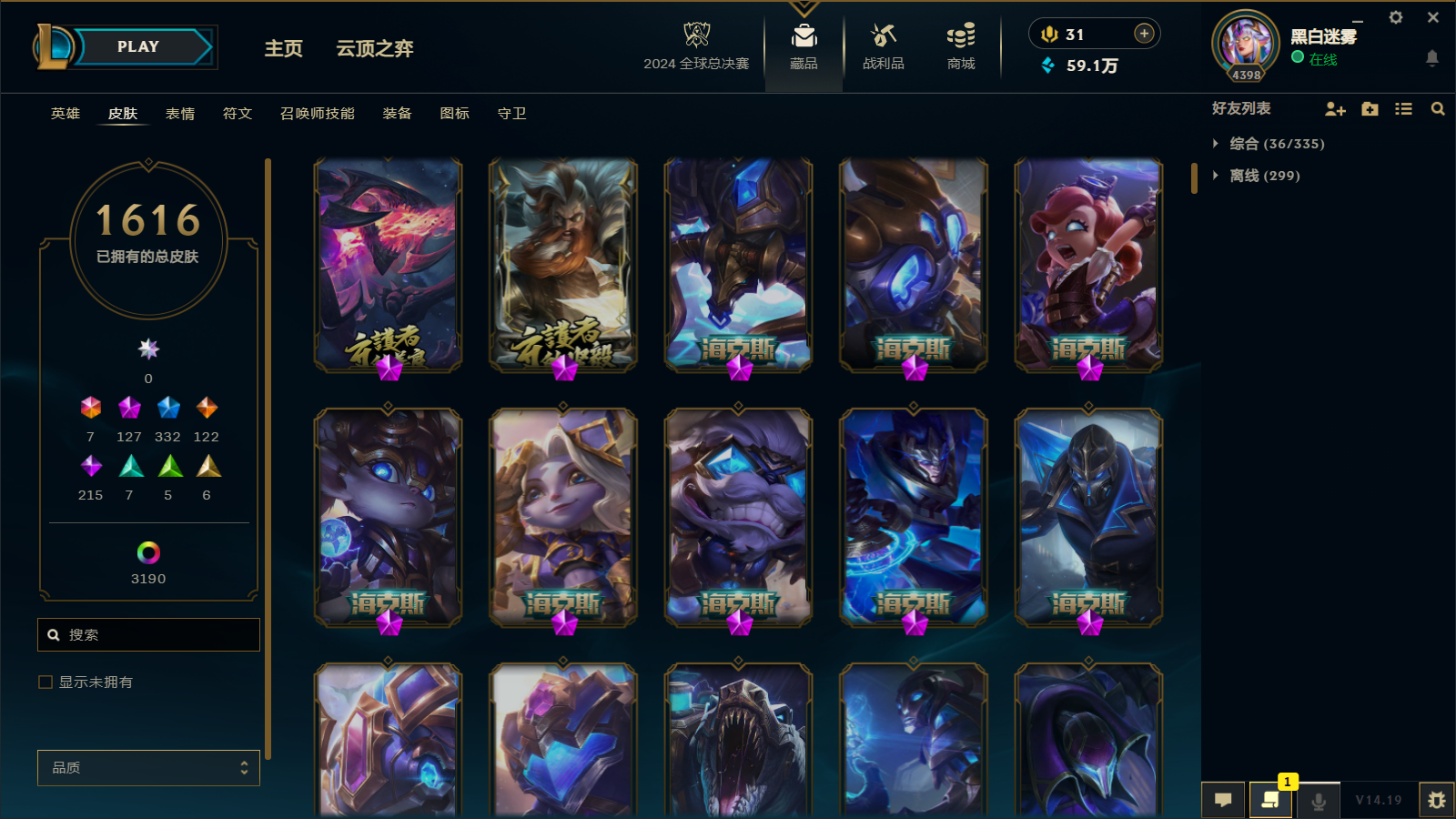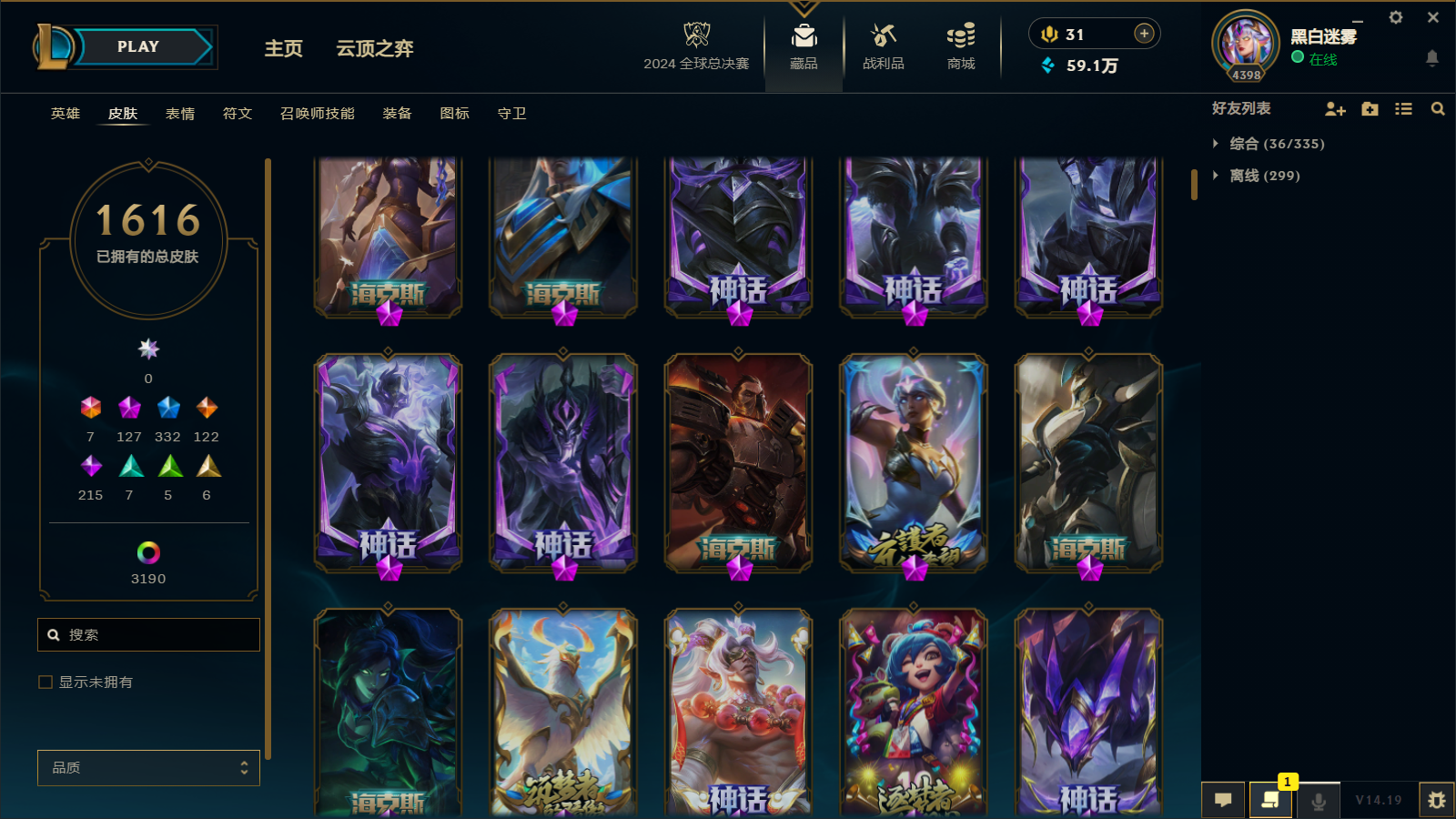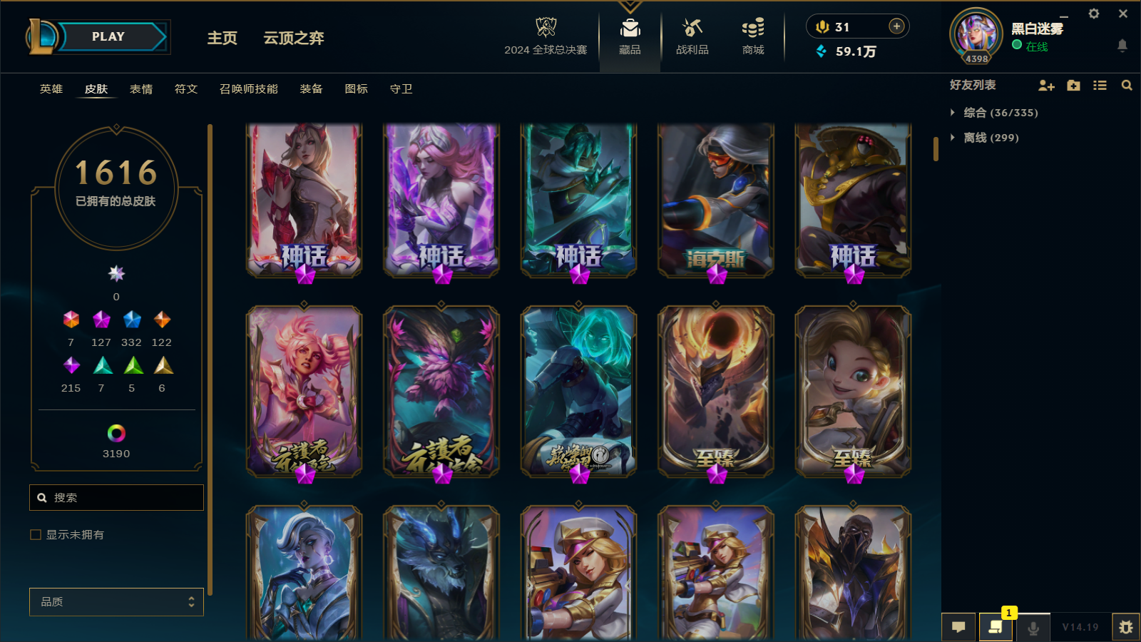 4916皮丨全平台TOP丨1616原画丨 127神话丨小小英雄棋盘也超多
