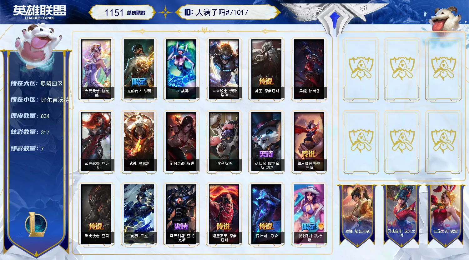 1200皮肤〓龙瞎〓哥特萝莉〓庆典女皇〓鸡里奥套〓限定150