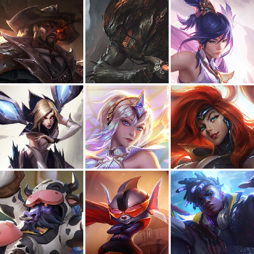 打野皮肤:国王佛爷,黑夜凯隐,真实伤害艾克,至臻剑圣,光明男枪,西部人马,灵魂莲花莉莉娅,丧尸努努。