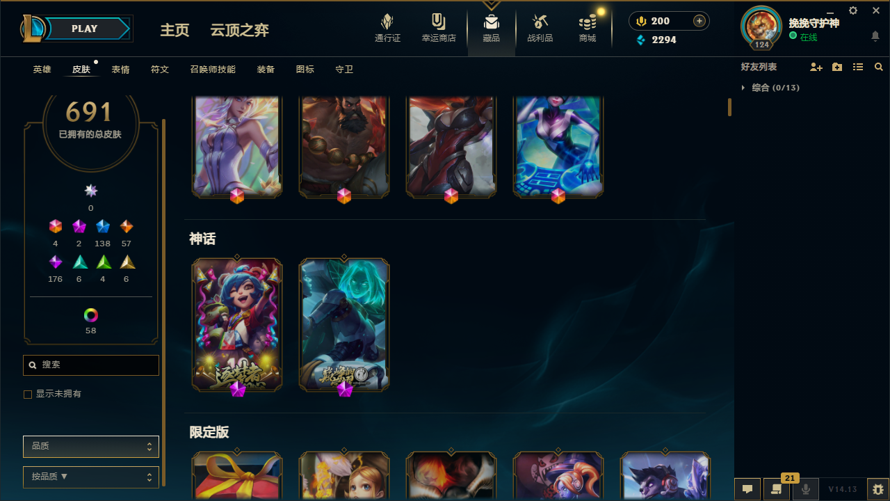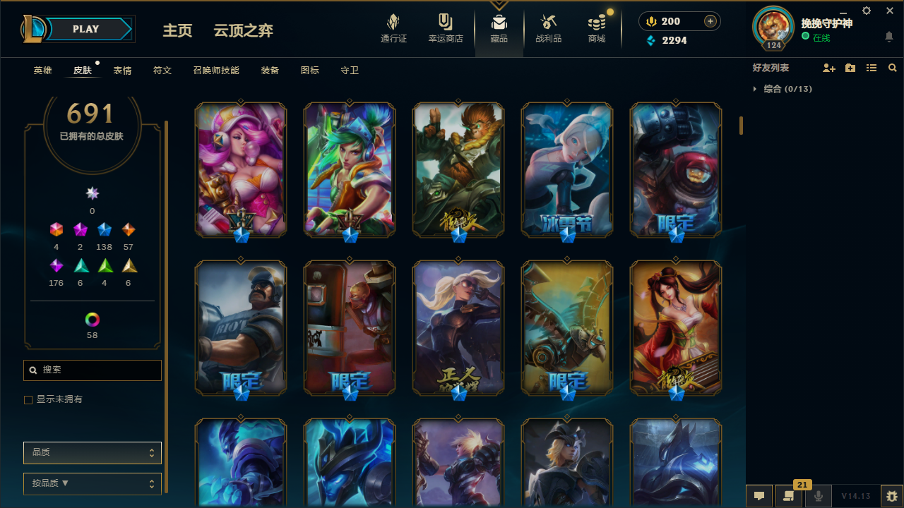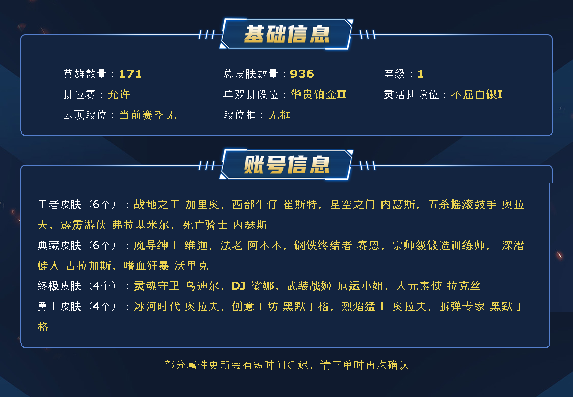 【蛋卷】妹子号白金可排❤️850P140限定❤️龙瞎龙猴龙琴周年诺手IG套暗星烬西部卢锡安
