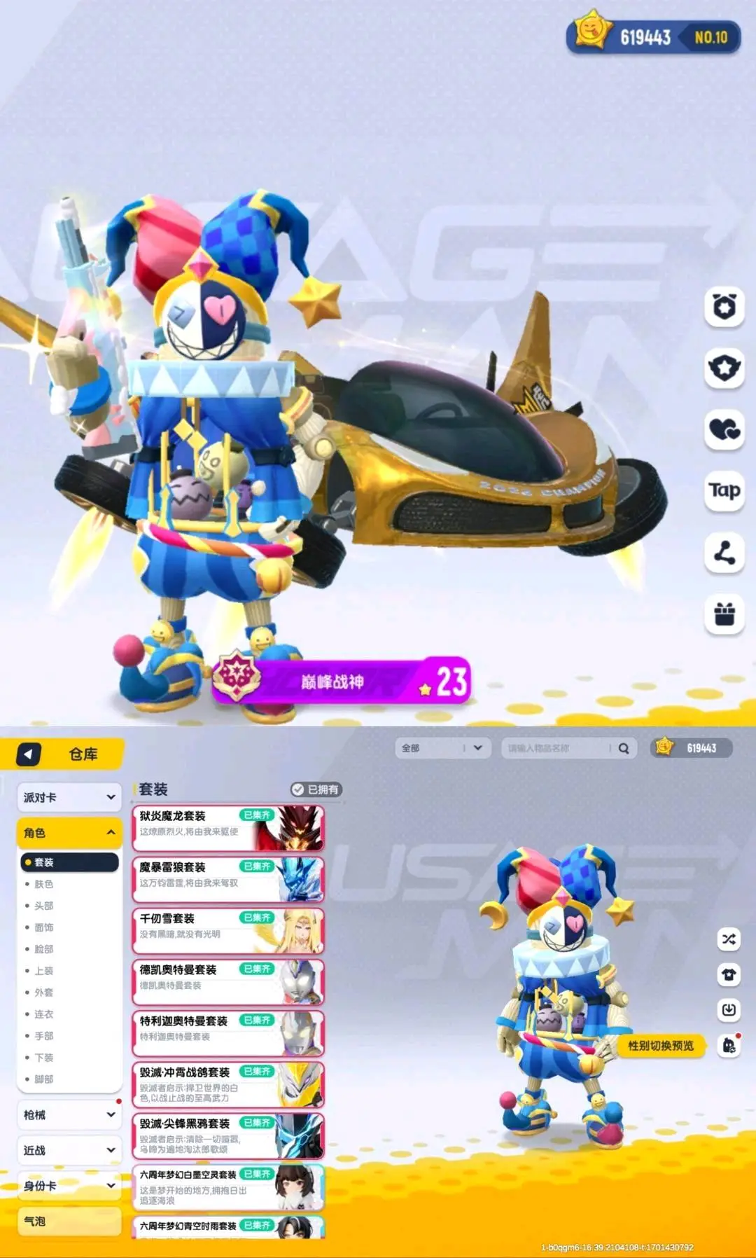 【安卓】 83万美味小丑🎱全服第6美味|变形金|假面骑士三丽鸥全|满级直购|全皮肤|全载具|最高传说19名|