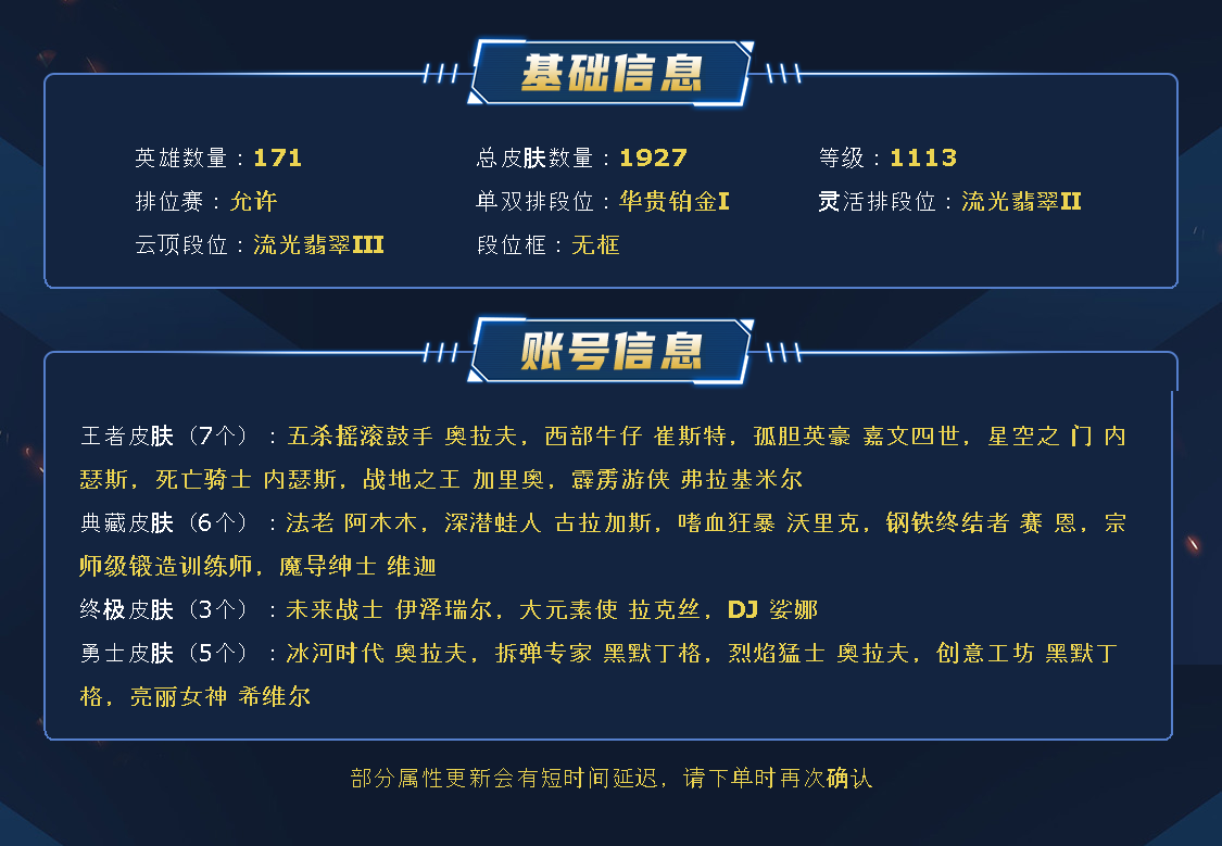 请不要挂机逃跑 会导致号主锁单 也会影响您的游戏体验 游戏登录不上去 请多试几次 下单以后 先上号看皮肤跟排位赛段位 确认下是不是您需要的 订单时间未结束不想玩了 随时可以撤单 喜欢此帐号请收藏 方便下次游戏使用