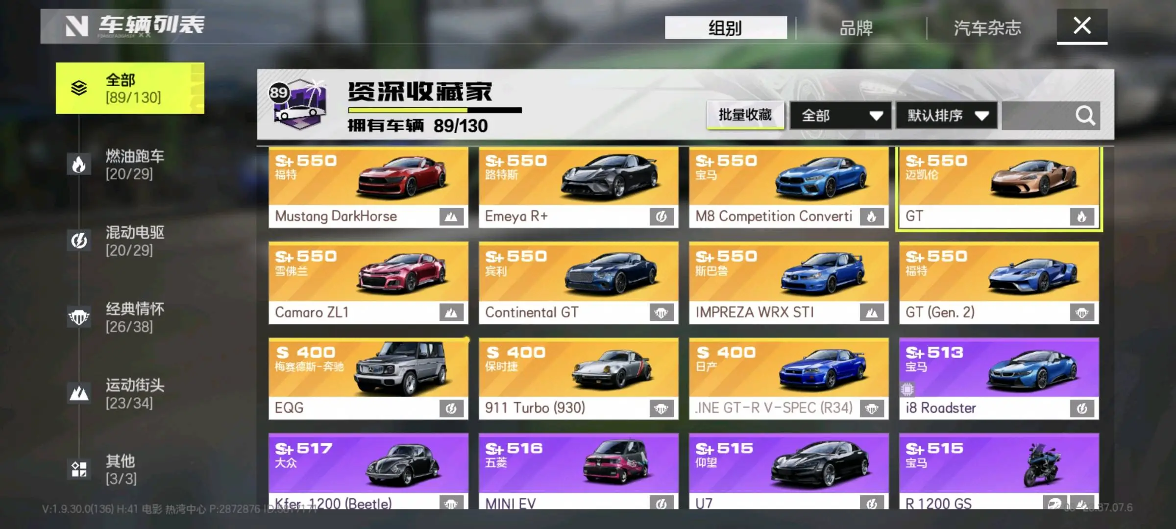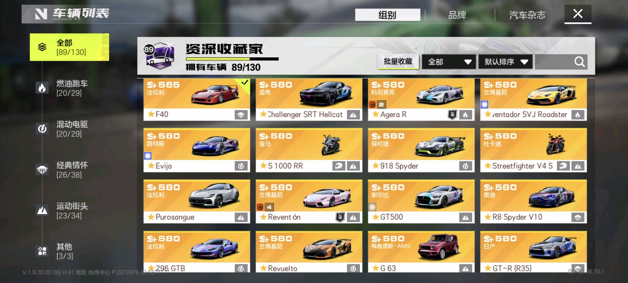 60金 金车:路斯特Evija,兰博基尼urus,仰望U9,谢尔比GT500,保时捷911,日产GTR,玛莎拉蒂MC20,仰望U8,日产350Z(NFS),兰博基尼SVJ,道奇地狱猫,红旗s9,道奇SRT-10,杜卡迪,马自达rx7,福特mdh,法拉利296,G66,布加迪cps,兰博基尼rev,奥迪r8,科尔维特c6,迈凯轮p1,宾利GT,本田NSX,科尼塞克Agera R,兰博基尼Revuelto,斯巴鲁IWS,丰田AE86