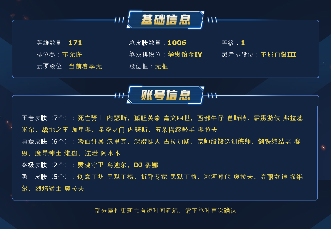 1000皮肤/可排位/128炫彩/134限定/战争学院