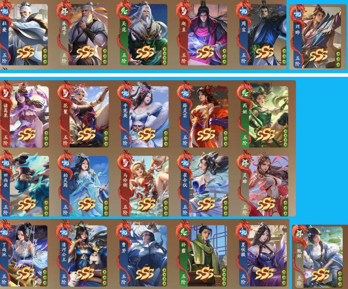 举例特效皮肤:曹纯许靖神华佗神庞统+薛灵**柏灵筠张璇许劭