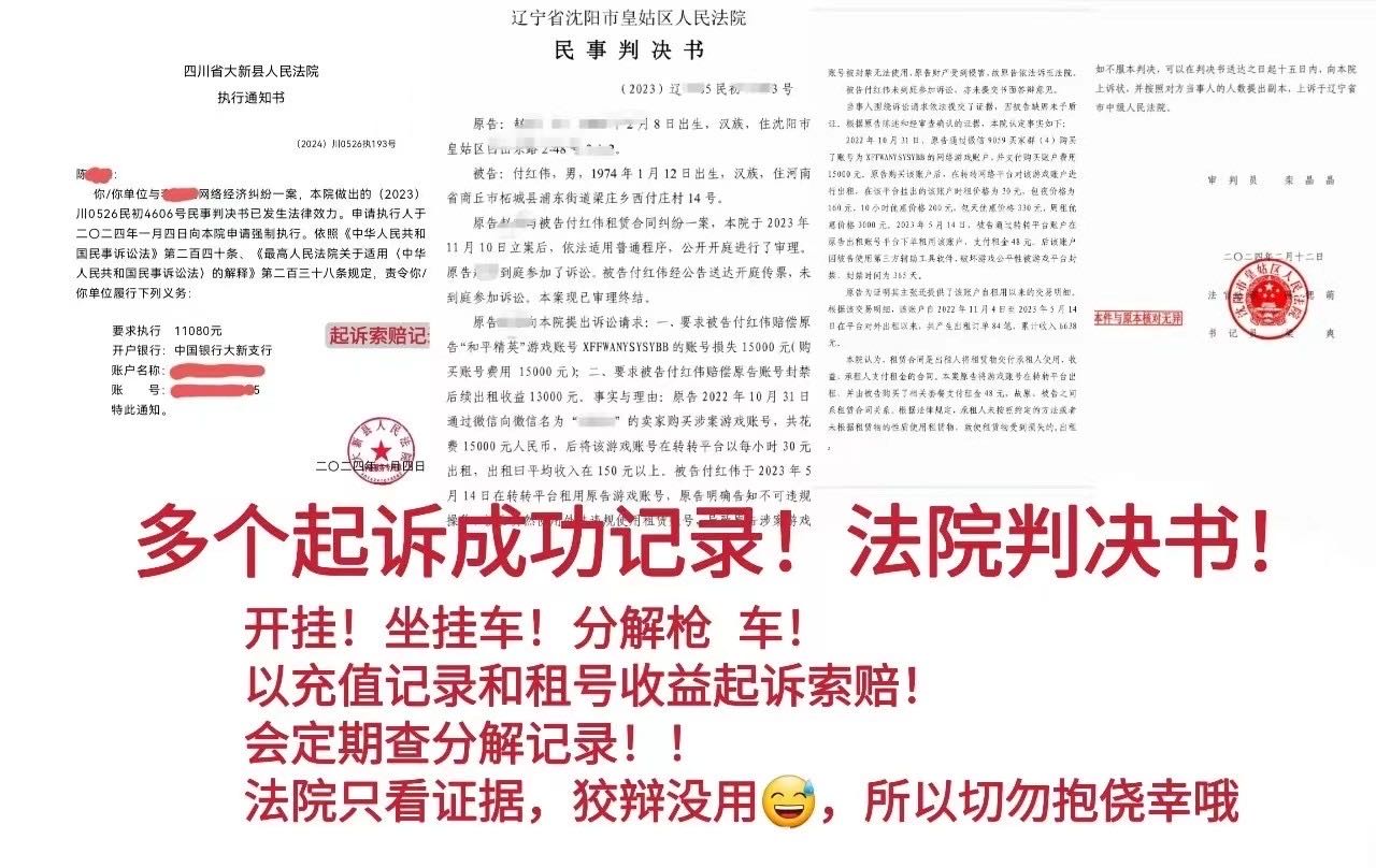 各位老板请文明游戏,后台随时监测如若发现禁言拆枪等等马上顶号结单处理,永久拉黑,并上报平台封禁设备处理!充值金额百万以上约为70WRMB!此号已备案,请文明游戏极品顶尖 !恶意维权平台将以完单处理拉黑并冻结账户!!请谨慎下单!不要恶意维权撤单!禁封号毁号必追究法律责任进行索赔注:此号充值70w元,不能分解特效枪以及升级车,分解则索赔5000元,下单即为同意此协议!(租号详情:租号期间禁止使用第三方辅助工具上号,禁止使用模拟器登录,禁止分解枪械和升级车,如出现账号封禁情况,一律通过实名人信息/手机号/ip登录地址追究其法律责任,平台/本工作室协助警方法院起诉账号够买金额/价值赔偿金额!)