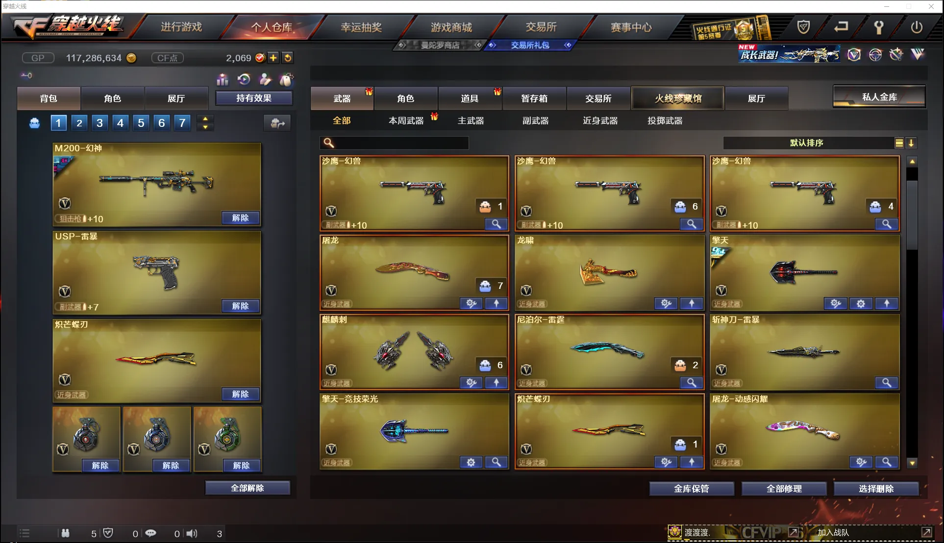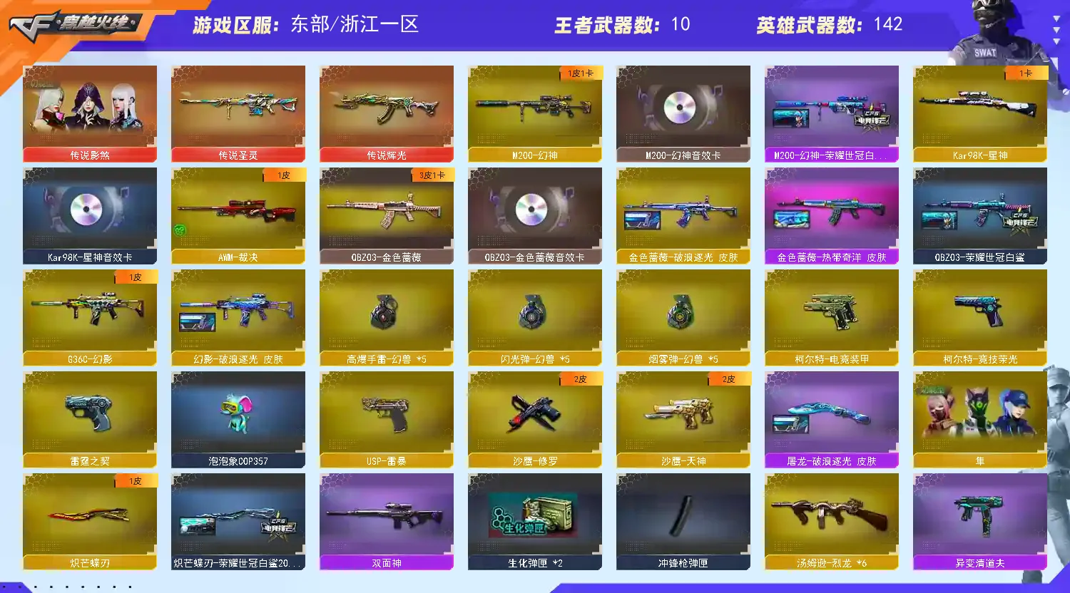 【副 武】:USP雷暴、天神(暗月)、COP雷霆、沙鹰幻兽X5、破空枪刃、柯尔特电竞装甲、阐释者、COP小青龙、胜利之火、大黄蜂