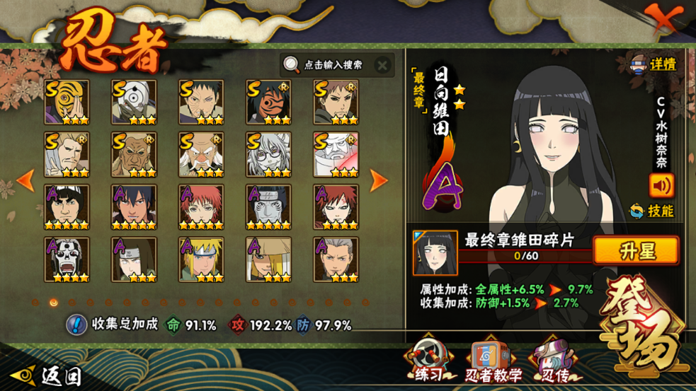 战力:1706W+;VIP12级;S忍33个;A忍38个,通灵兽22个,S忍:普通纲手仙人自来也猿飞日斩九喇嘛鸣人永恒万花筒佐助忍战樱大蛇丸死门凯普通自来也豪杰自来也波风水门秽土猿飞秽土扉间千手扉间秽土柱间秽土斑木叶创立斑秽土解斑须佐鼬秽土