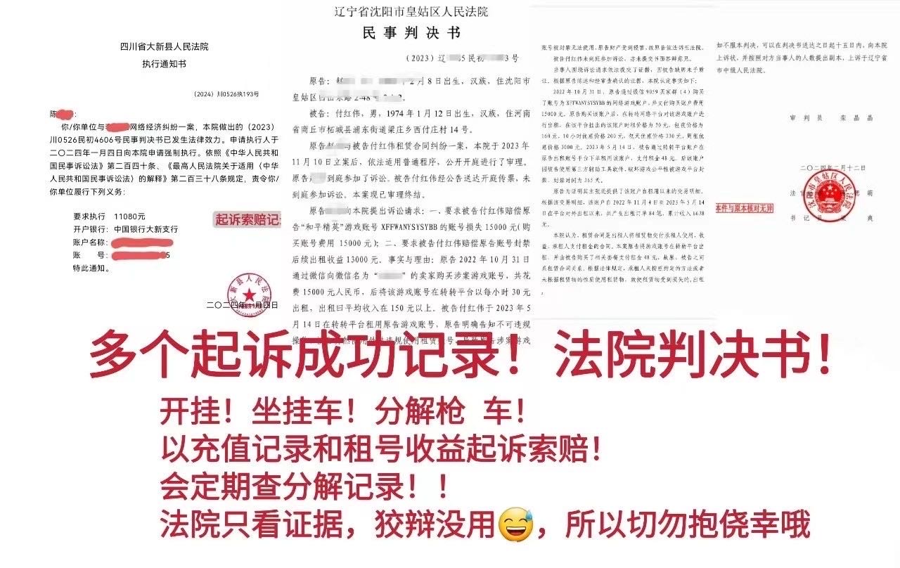 账号充值达到一定金额,已在当地派出所备案,使用外挂造成账号损失,必追究责任走法律程序追回损失,切勿以身试法