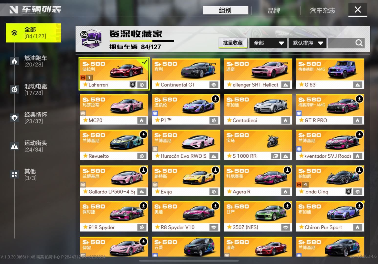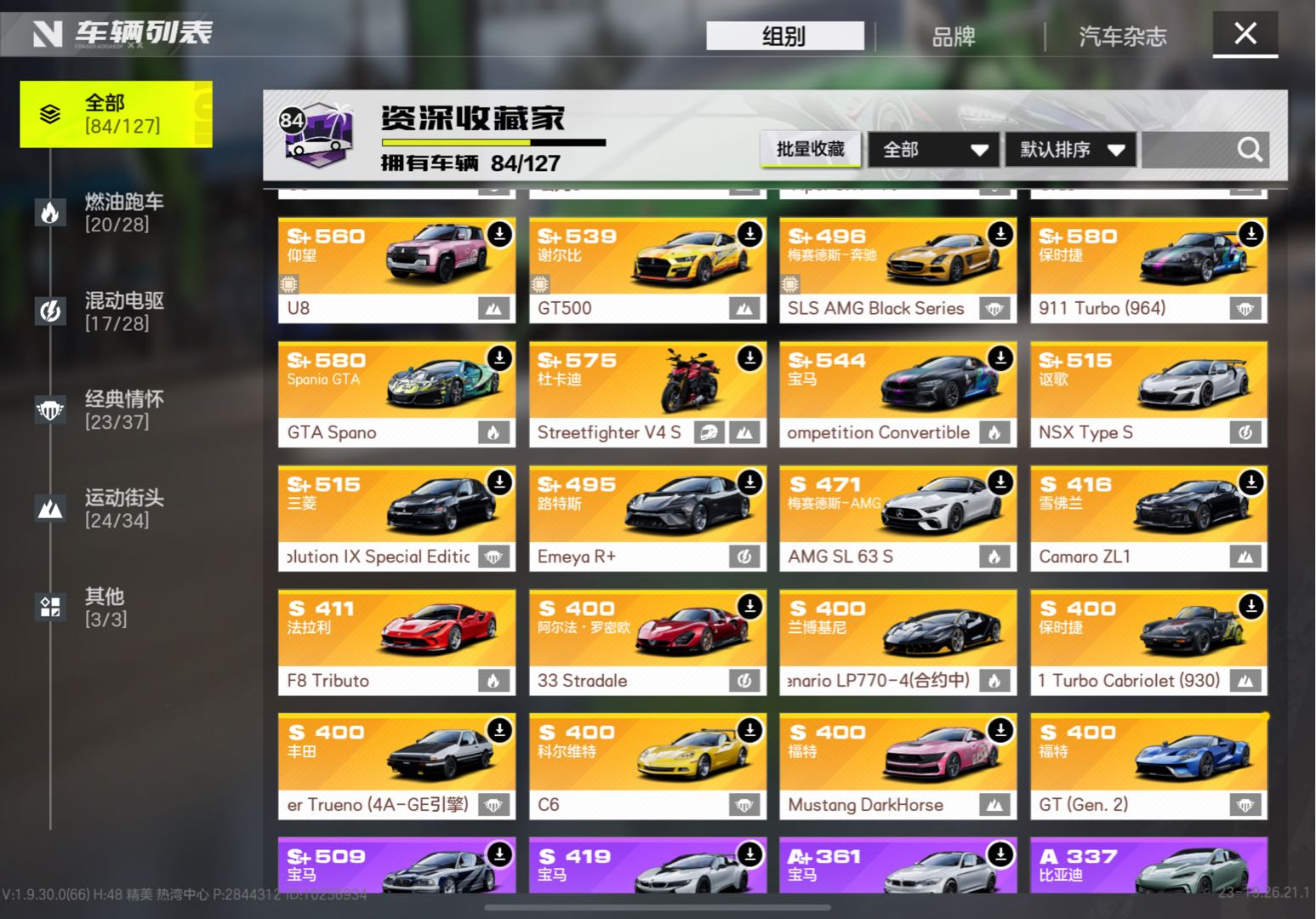 【苹果】 🔥🔥ios账号84辆车可以玩的五十多辆满级拉法ECU3阶强化