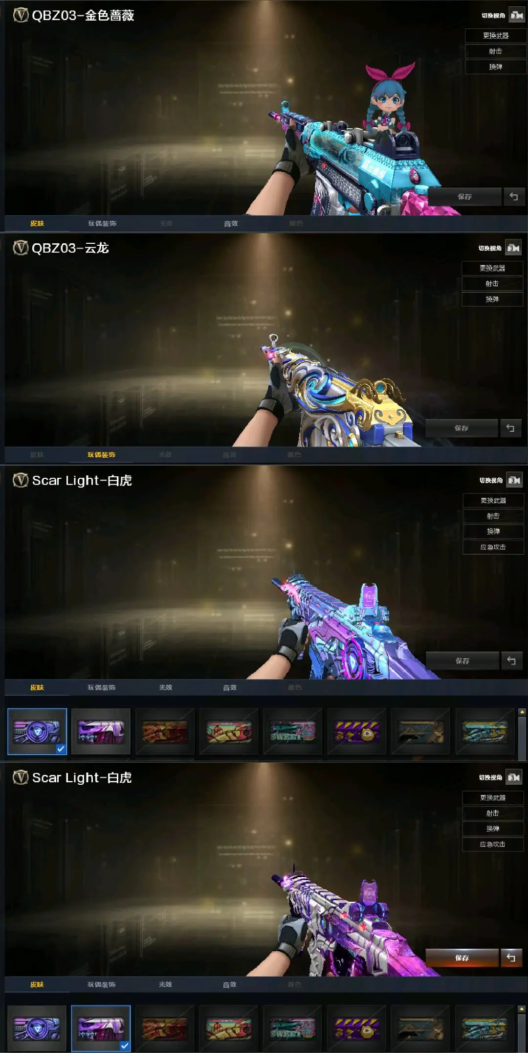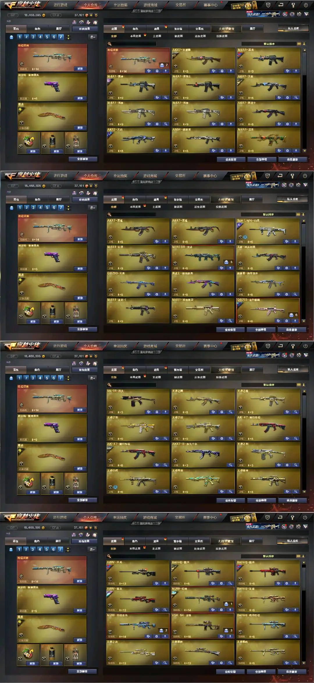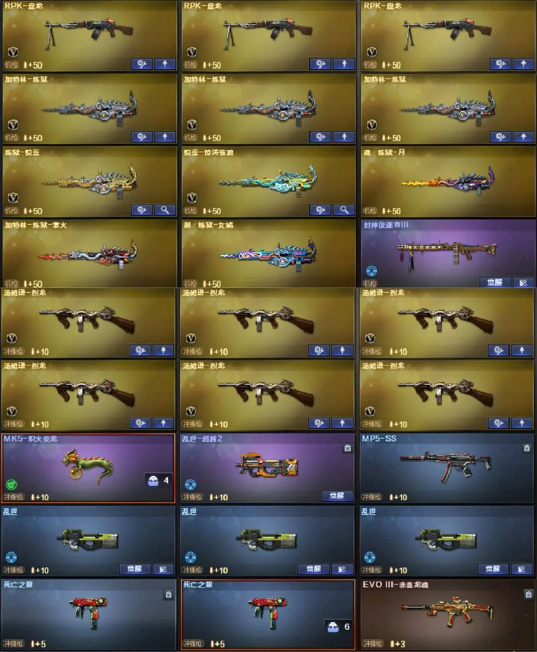 多四防角色:云悠悠☆审判者☆王者涂鸦+雾萌萌☆传说灵眸+幻神双皮(冠军之幻+纸灯龙)qbz三件套(荣耀白鲨)☆竞技荣光套☆幻灵套☆白虎双皮+王者白虎+玄武☆炽芒蝶刃☆qbz云龙☆多小人枪MK5炽火炎龙☆屠龙(星火燎原皮)☆cop×3(雷霆+云龙+白鲨)+usp神工天巧+柯尔特·赛博朋克☆3盘龙7炼狱6盘龙+死亡之眼☆音效卡(qbz+雷神+毁灭+火麒麟)等等,每把武器都带有皮肤!还有很多皮肤就不一一描述了,具体可以看图!