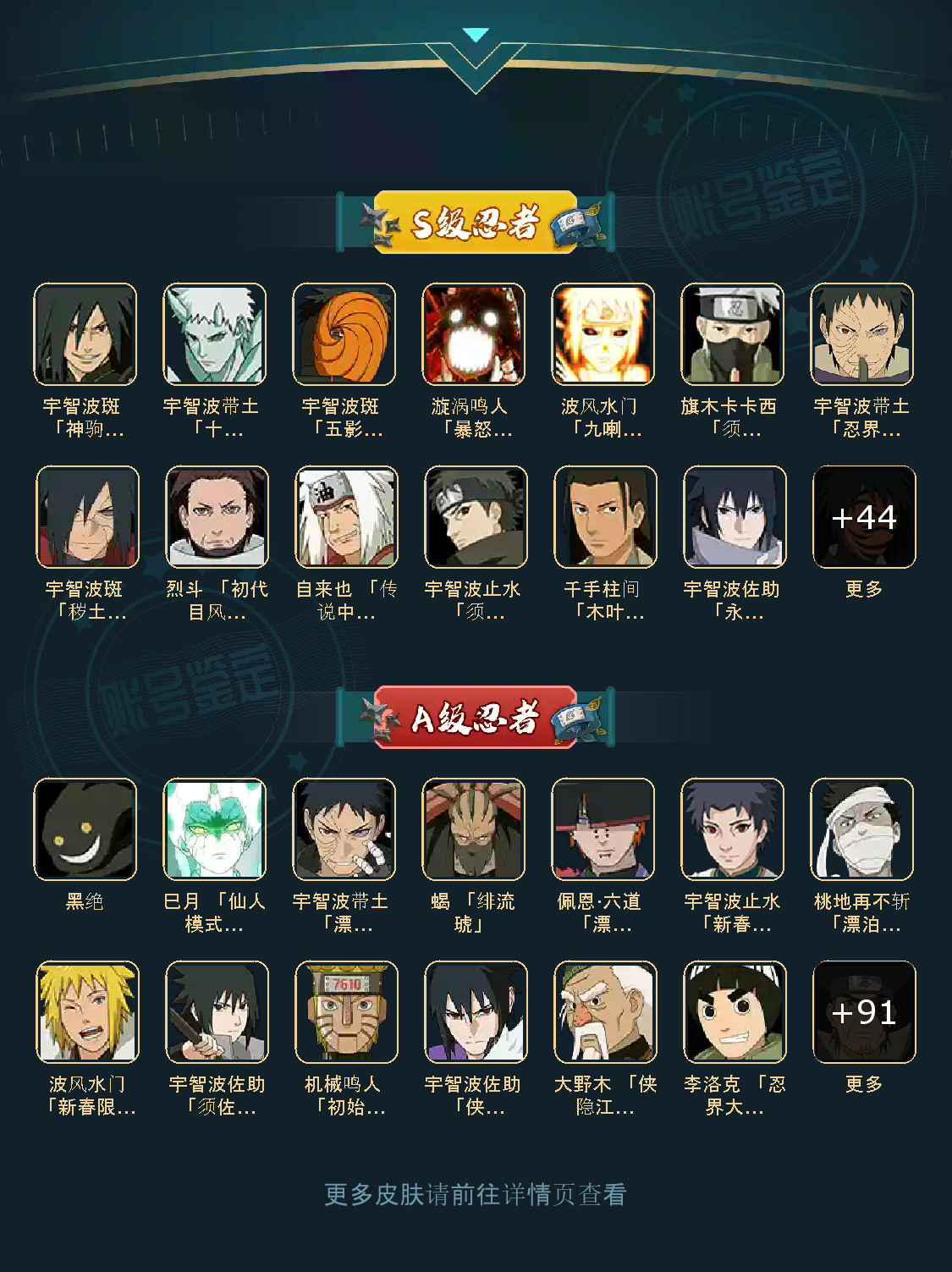白面具 须佐卡卡西 小胡子鬼灯幻月 雷影 土影 无 佩恩 百战佩恩 青年柱间 创立初代 秽土斑 青年斑 解斑 须佐止水 虎皮 破面带土 红夜带土 罗砂 秽土三代风影 忍战雷影 三代雷影 金角银角 秽土半藏 忍战大野木 小土豆 天道超 大筒木桃式 大筒木金式 钢铁之躯凯 桀骜之刃阿斯玛 狂野之鲨鬼鲛 飞段 黑飞段 百豪樱 忍战李 大卡卡西 五代水影照美冥 宇智波鼬 仙鸣 九尾查克拉鸣人 樱佐 奇拉比 青年艾 半蛇兜 晓蛇 新春鼬 面麻 须佐佐助 疾风咒印佐助 忍战宁次 忍战天天 最终章雏田 幻容卡卡西 神卡 忍战卡卡西 泳装卡卡西 忍战凯 青春哥 惊门凯 爱情哥 新春止水 新春水门 青年水门 青水 新春我爱罗 泳装照美冥 侠隐照美冥 侠隐纲手 侠隐兜 漂泊再不斩 漂泊佩恩 漂泊二代 漂泊小南 漂泊佩恩 三船 青年三船 青年长门 泳装南 新春南 黑绝 新春大蛇丸 晓创生角度 晓创生蝎 晓创生飞段 泳装鼬 鲛肌融合鬼鲛 新春迪达拉 秽土迪达拉 恶灵之影飞段 暴怒带土 忍战黄土 卑留呼 桃博 黑土