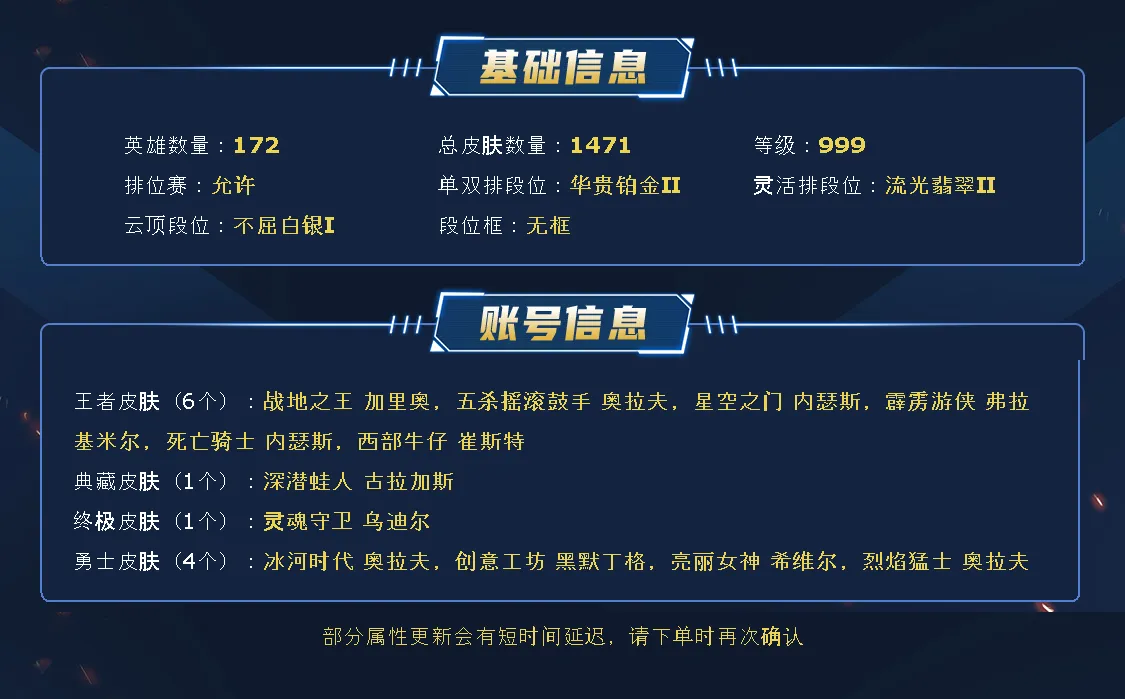 ~~喜欢记得收藏~~可排位~~1500皮全英雄丨744原皮453炫彩~~租之前尽量查一下游戏ID,确保段位是您需要的,避免浪费您的时间~~请勿挂机逃跑故意送人头,谢谢合作,谢谢~~