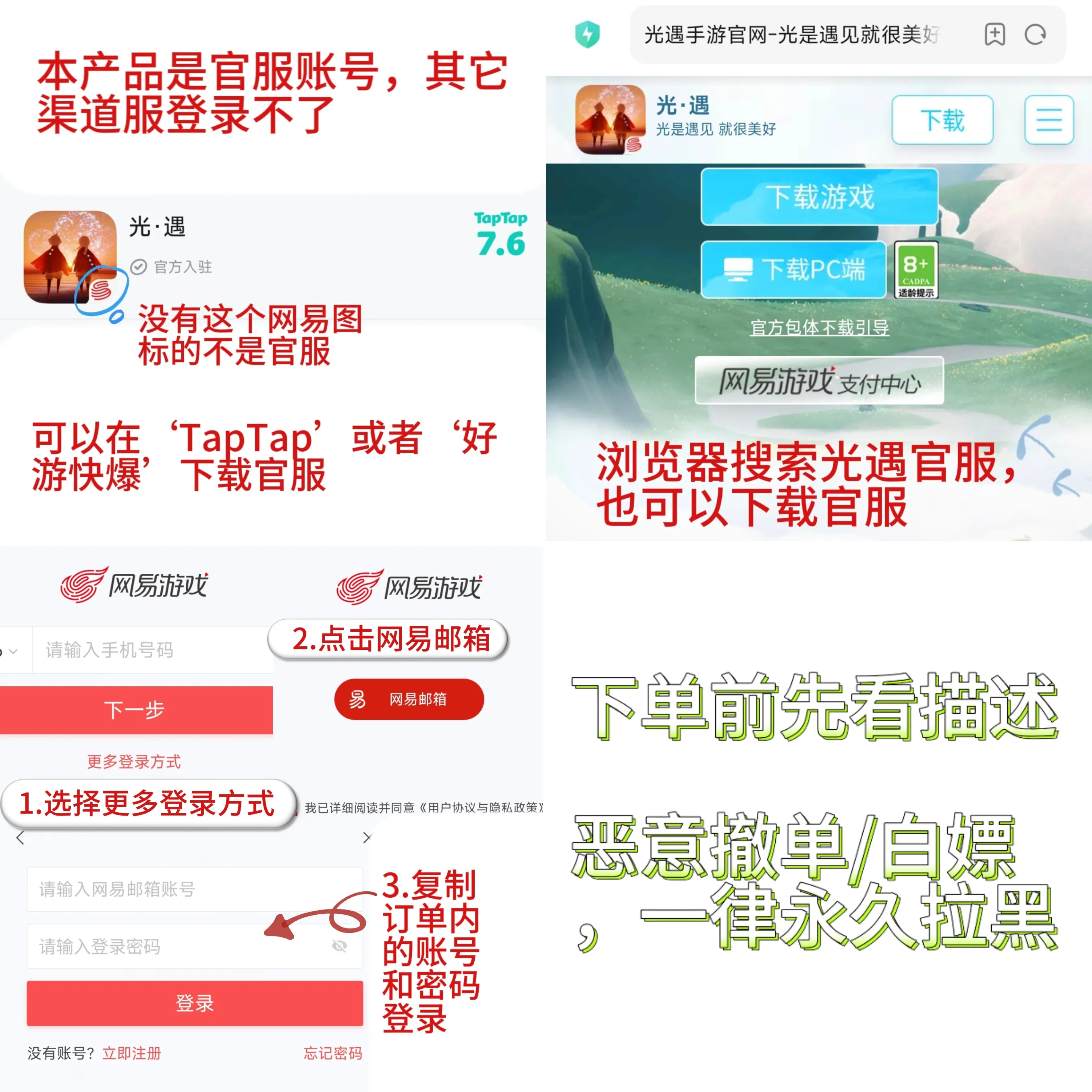 安卓官服!!光遇官服!! 仅官服可登陆! 不存在密码错误 登不上属于登错服 恶意投诉一律永久拉黑