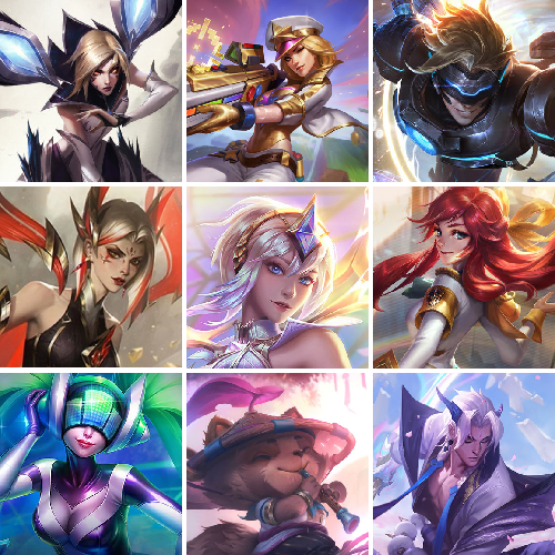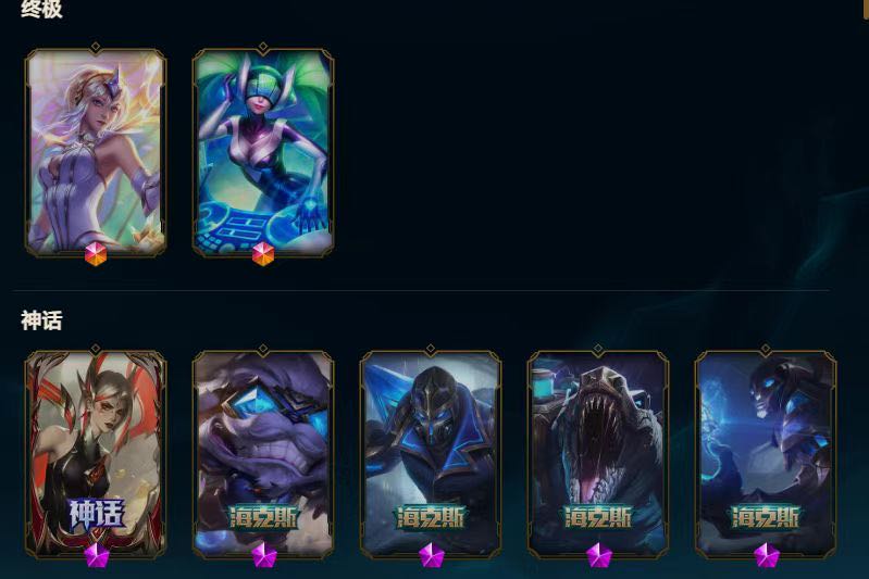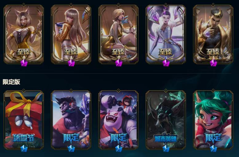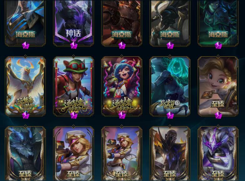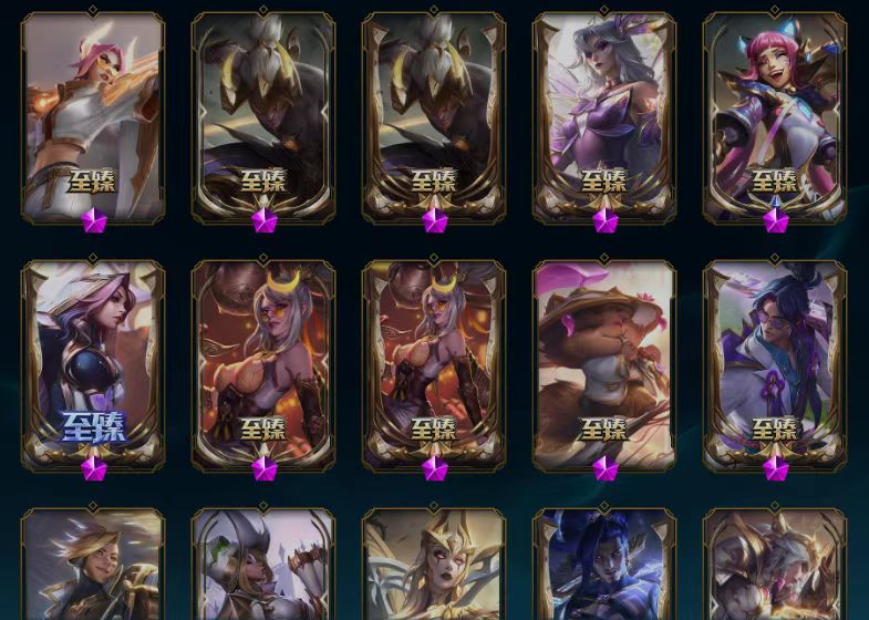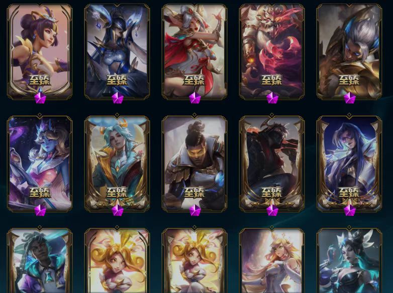 至臻魔域梦魇泽丽/至臻北极星钢影卡蜜儿/至臻魅惑女巫莫甘娜/至臻灵魂莲华提莫/至臻太空律动魔音海妖娜美/至臻T1杰斯/十五周年纪念希维尔/海克斯科技马尔扎哈/恐惧新星德莱厄斯/至臻真实伤害塞纳/殿堂传奇乐芙兰/至臻青花瓷丽桑卓/摄魂使者薇恩/至臻猩红之月亚托克斯/至臻天龙之子伊泽瑞尔/至臻源计划正义艾瑞莉娅/至臻神凰行者列羽焰凰霞/至臻星之守护者索拉卡/至臻心之钢永恩/至臻魔女乐芙兰/至臻星之守护者辛德拉/至臻斗魂觉醒萨科/至臻斗魂觉醒派克/至臻福牛守护者菲奥娜/至臻KDA伊芙琳/至臻月蚀骑士塞纳/至臻源计划阴劫/至臻DRX亚托克斯/灰烬守护者慎/至臻墨之影武者亚索/至臻花仙使者卡特琳娜/至臻战斗学院拉克丝/至臻奥术师左伊/至臻绝息圣堂厄运小姐/至臻KDA阿狸/至臻北极星使者沃里克/至臻KDA阿卡丽/零式枪骑赫卡里姆/至臻灵魂莲华易/至臻至高天奎桑提/至臻魅惑女巫厄运小姐/至臻星之守护者艾克/至臻西部魔影猎天使恶魔泰隆/至臻幻灵战斗猫金克丝/至臻KDA卡莎/至臻玉剑传说武剑仙/至臻烈焰美人薇恩/至臻黑夜使者李青/至臻真实伤害奇亚娜/至臻星之守护者妮蔻/至臻电玩女神凯特琳/至臻青花瓷拉克丝/大元素使拉克丝/至臻焰执事布兰德/至臻神龙尊者炎龙瑟提/至臻神龙尊者均衡之龙沃利贝尔/海克斯科技吉格斯/至臻灵能特工伊泽瑞尔/海克斯科技斯维因/至臻源计划逆流塞拉斯/源代码乐芙兰/海克斯科技雷克顿/DJ娑娜/至臻女帝黛安娜/至臻KDAallout卡莎/至臻未来战士卢锡安/海克斯科技卡萨丁/水晶巫灵泽拉斯/未来战士ez