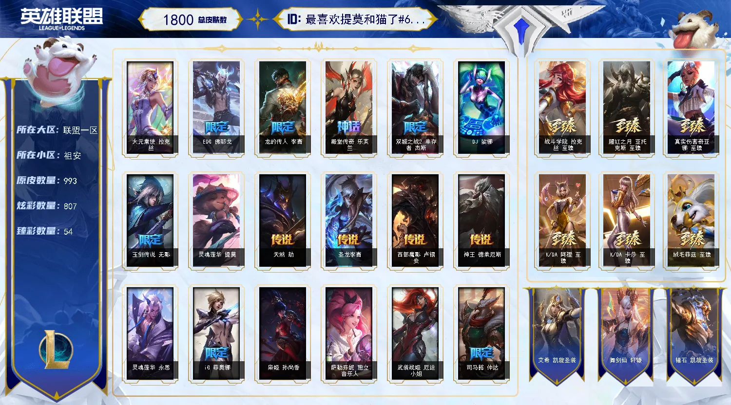 【联盟一区】1781质量皮丨78神话丨双城2杰斯丨EDG/IG套丨斗魂莎弥拉丨冰雪节皎月丨兔年刀妹