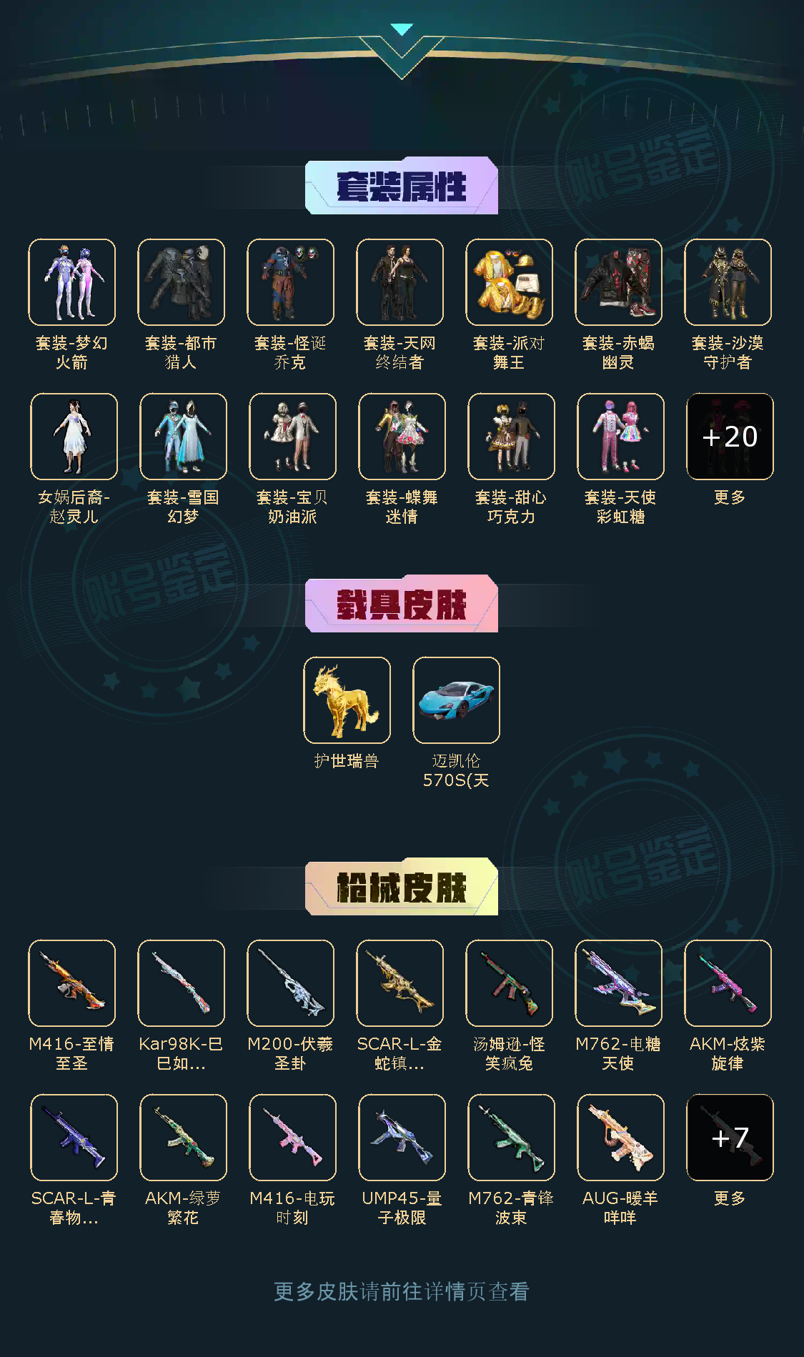 【粉色枪皮】M416-心之恋语/AKM-炫紫旋律/AKM-绿萝繁花/SCAR-L-金蛇镇世/SCAR-L-锦绣绵绵/SCAR-L-青春物语/M416-至情至圣/M416-电玩时刻/M416-墨龙九天/AUG-暖羊咩咩/M762-电糖天使/M762-青锋波束/Kar98K-巳巳如意/M24-莲影清波/M200-伏羲圣卦/UMP45-量子极限/汤姆逊-怪笑疯兔