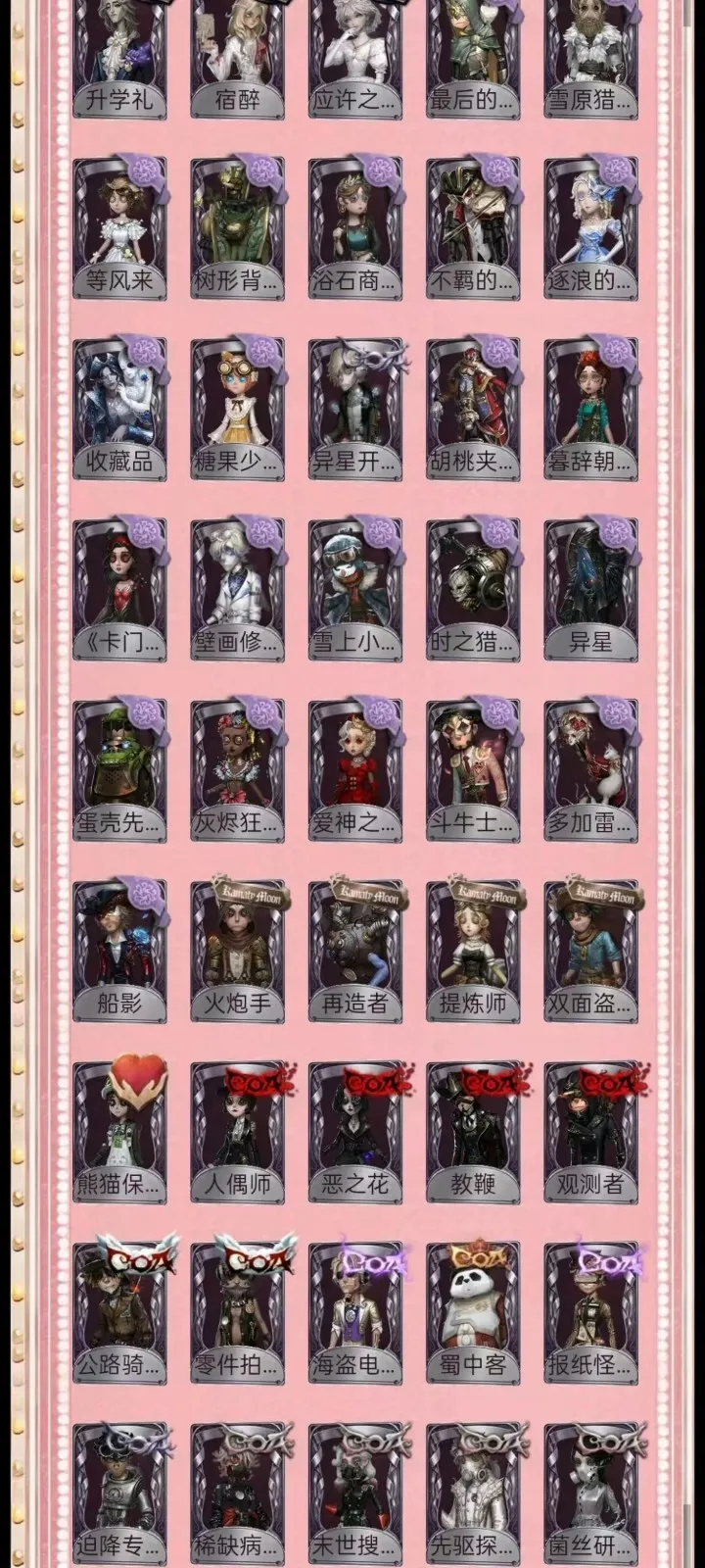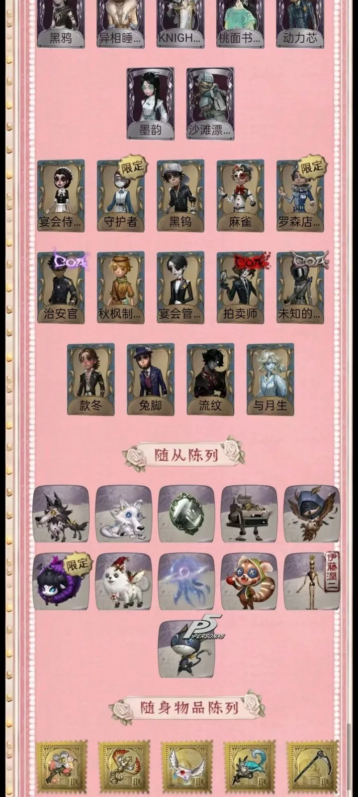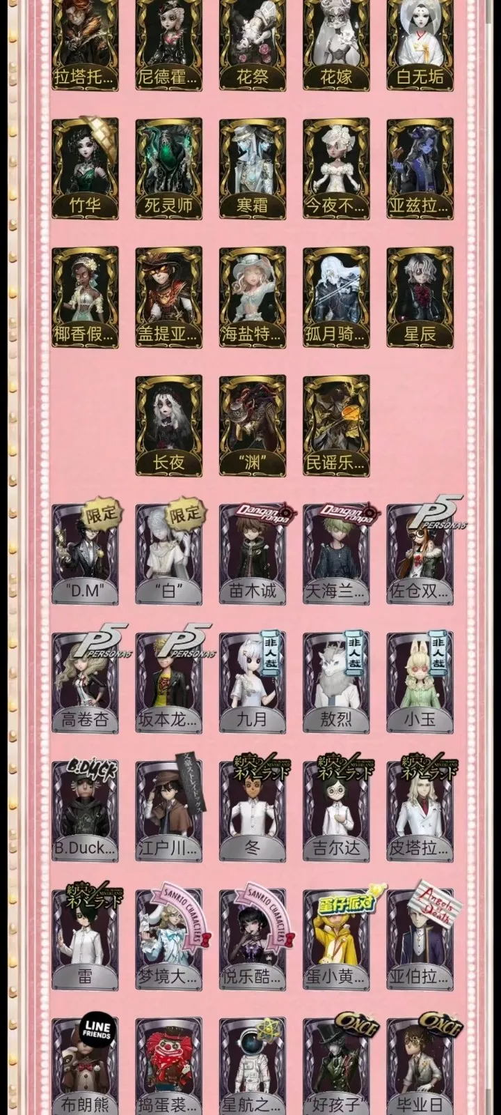 租号必看,开挂必报警 恶意毁号必报警 报警报警报警报警报警报警报警报警报警报警报警报警报警报警!!!! 1-挂机封号必报警处理 挂机封号损失 查ip 报警处理 禁止使用外挂,此帐号非账号问题不可撤单! 2-官方账号密码直接登陆,禁止游戏内刷喇叭说卖号骗人,抓一次直接报警, 禁止开挂,本账号经过网络财产备案,一直发现直接报警处理不会登陆的租客请下载 taptap 找第五人格下载游戏 3-账号财产价值很高,本店24小时在线,恶意投诉秒顶改密,直接拉黑,永久不让租 4-使用外挂,脚本等一切破坏游戏平衡,在平台提取实名ip(都是vzfb实名消费)直接立案追责,三倍赔偿账号价值 5-本店文明租号,你好我好大家都好。游戏本身就是消遣娱乐的地方,切勿消极对待,切勿以身试法,文明租号,快乐你我他。祝每个租客都有好心情,维护好环境。 6-游戏里任何东西都不要想着去破坏,试图解除二级密码的,一经发现直接拉黑。 7-游戏里涉及到任何钱财账号交易,一律不要相信,天上不会掉馅饼,如有财产损失,与本账号无关,文明租号。 鸽子般的尤迪特 当铺老板 圣诞信使 白松露 罪恶熔火 名誉首席 招风旗 精致的笑容 变王 片刻闲暇 限定 限定 不屈的信仰 未至之人 艾礼克佛斯特 太宰治 芥川龙之介 P 川上富江 雨宫莲 JOKER B.Duck 日向创 夜来香 忘川渡人 盛宴伯爵 金纹大触 小丑皇 拉塔托斯克 尼德霍格 花祭 花嫁 白无垢 竹华 死灵师 寒霜 今夜不再 亚兹拉尔 椰香假日 盖提亚之遗 海盐特调 孤月骑士 星辰 长夜 "渊” 民谣乐手 |珍时装 限定 限定 "D.M" ”白” 苗木诚 天海兰太郎 佐合双叶 高卷杏 坂本龙司 九月 敖烈 小玉 气 B.Duck潮 江户川乱步 冬 吉尔达 皮塔拉托里 圣仔对 雷 梦境大耳狗 悦乐酷洛米 蛋小黄的好朋友 亚伯拉罕:莫雷 LINE FARYENDS 布朗熊 捣蛋裘克 星航之旅 “好孩子” 毕业日 升学礼 宿醉 应许之日 最后的荣光 雪原猎人 等风来 树形背景板 浴石商人 不羁的浪漫 逐浪的玫瑰 收藏品 糖果少女 异星开采 胡桃夹子 暮辞朝归 《卡门》 壁画修复员 雪上小王子 时之猎手 异星 蛋壳先生 灰烬狂想 爱神之吻 斗牛士之吻 船影 火炮手 再造者 提炼师 双面盗贼 eo eor求 ec 能猫保育员 人偶师 恶之花 教鞭 观测者 公路骑士 零件拍档 海盗电台 蜀中客 报纸怪客 迫降专家 稀缺病案 末世搜救 先驱探索 菌丝研究 填海平 紧急运输 独行者 哈姆雷特 黑郁金香 宾虚 桃乐丝 木兰 绿纹大触 白纹大触 便 藤 潤 6 斯文加利 双一 光天使 永生花 白兔先生 兰斯洛特 传信官 蒸汽朋克 圣诞狂鹿 镏金铜鹿 梅林 爱丽丝 弹簧手 思明 不死护卫 怀古 “苏珊娜” Re Swim 纸心 “月佑者’” 香董 仙鹤 硫火 波塞冬 寄生之面 十字路口的美少年 残花泪 箭竹 日月相随 程小时&陆光 阴阳司公 梦之使者 “厄运" 笼中之蝶 致命温柔 红菱艳 冰上舞蹈 逆刃之鞭 月下绅士 阿波罗 暮剑 安宁 月相 历战猎人 鸩 喜多川祐介 守钟人 记忆之骑 羽蛇 缄默者 “向导” 祝祷 狰 鼹鼠先生 罗纳德 迷途诗人 弄臣 可可豆 ACE 女高音 “宴舞” 夜光杯 西部大亨 霰 “亡灵” “王子” 校监夫人 荒野女巫 列车长 电解 衔尾蛇 黑女巫 曼陀罗 “玛利亚” 玛吉努 鬼天蛾 莱拉 年岁 淋浴 烟花盖伊 黑鸦 异相睡眠 KNIGHT-c3 桃面书生 动力芯 墨韵 沙滩漂移 宴会侍女 守护者 黑钨 麻雀 罗森店长 eox E 治安官 秋枫制服 宴会管家 拍卖师 未知的“来客” 款冬免脚 流纹 与月生