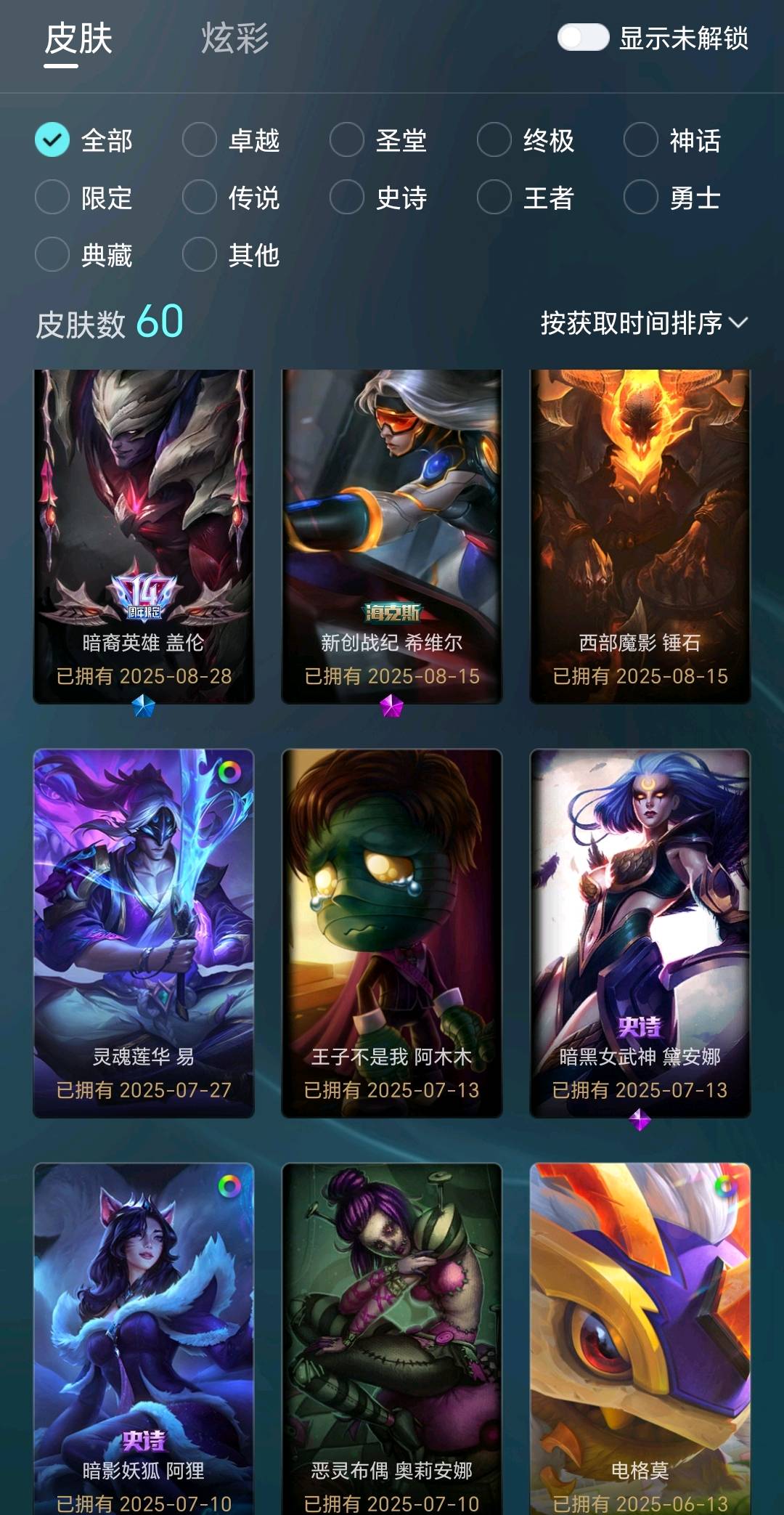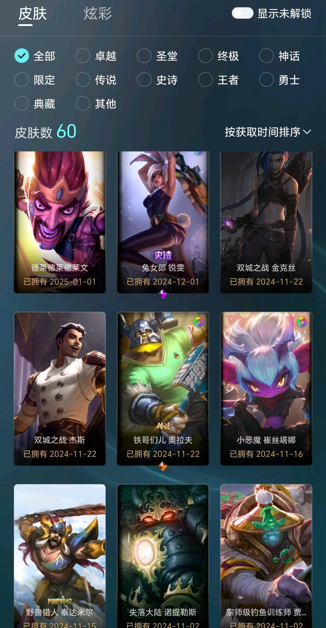 - 炫彩皮肤数量: 60