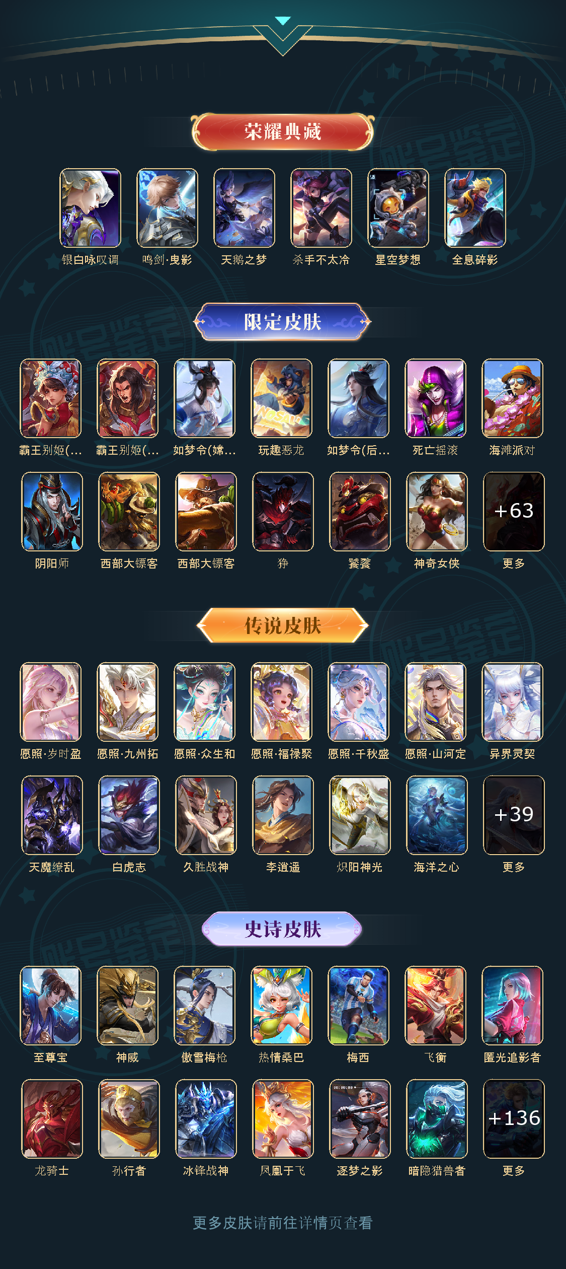 冰锋战神/街头霸王/天鹅之梦/天魔缭乱/至尊宝/杀手不太冷/凤求凰/热情桑巴/逐梦之影/武陵仙君/神奇女侠/星空梦想/梅西/黄金狮子座/一生所爱/全息碎影/大圣娶亲/冰霜恋舞曲/青龙志/白虎志/朱雀志/太华/久胜战神/飞衡/梁祝/白鹤梁神女/匿光追影者/鸣剑·曳影/遇见胡旋/龙胆/李逍遥/武圣/奔雷神使/孙行者/异界灵契/神威/傲雪梅枪/淬星耀世/时雨天司
