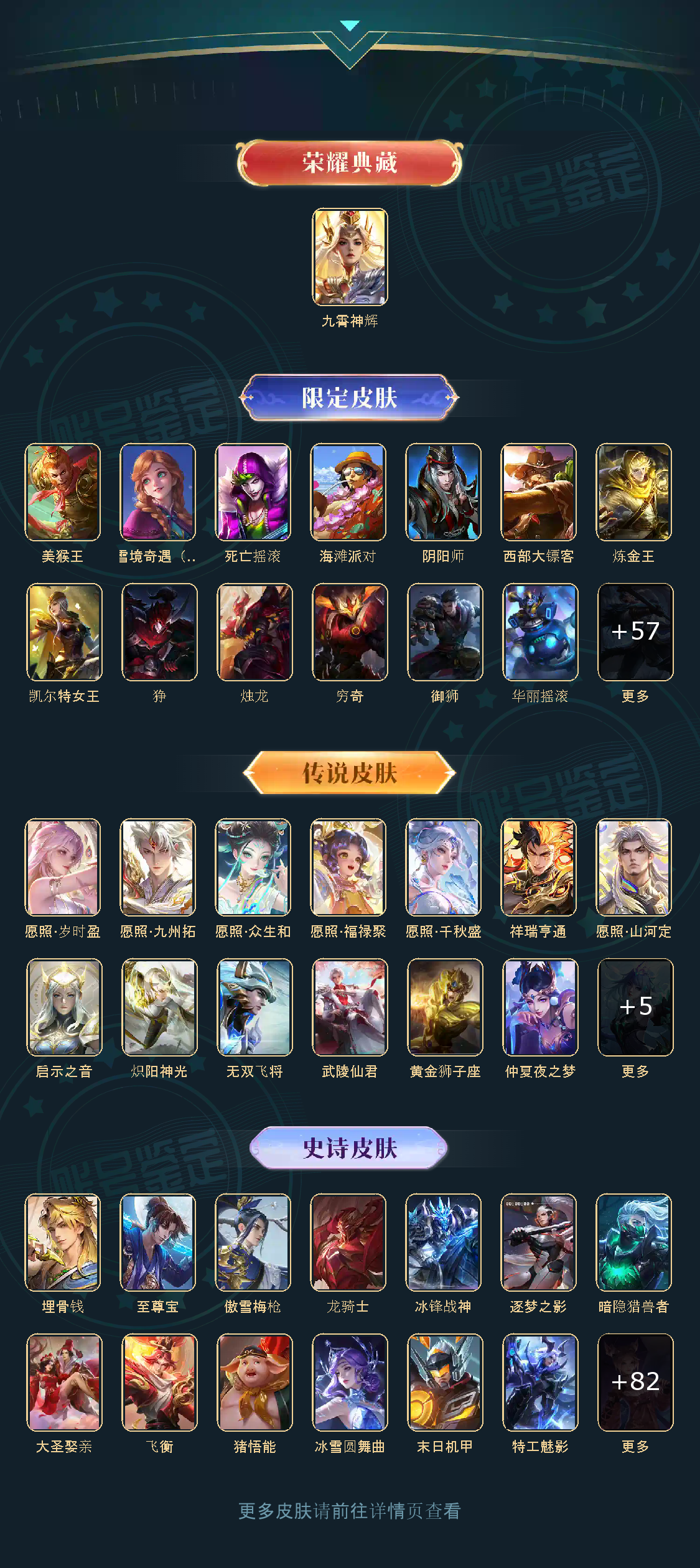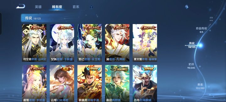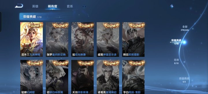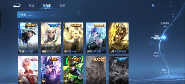 英雄数量121,典藏皮肤数1,皮肤数量298,武陵仙君/黄金狮子座/启示之音