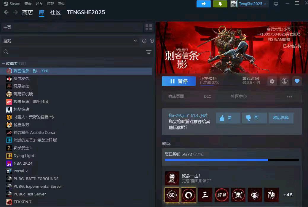 【全集齐、满级存档刺客信条:影1元包夜2元包天】+18热度游戏【登不上号看个人资料账号密码】