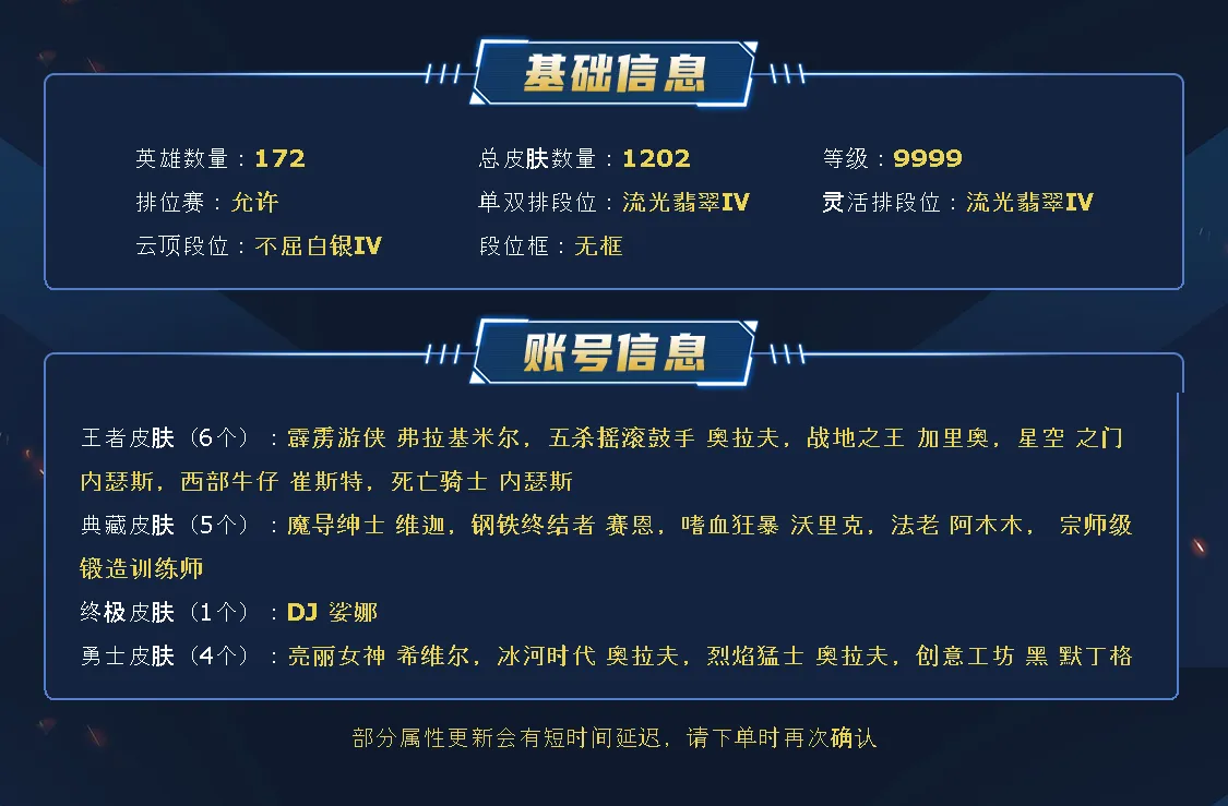 ██ 全英雄 1200皮丨60神话丨IG套丨EDG套丨FPX套丨甜心霞洛丨神龙李青卡莎丨鼠年武器瑟提