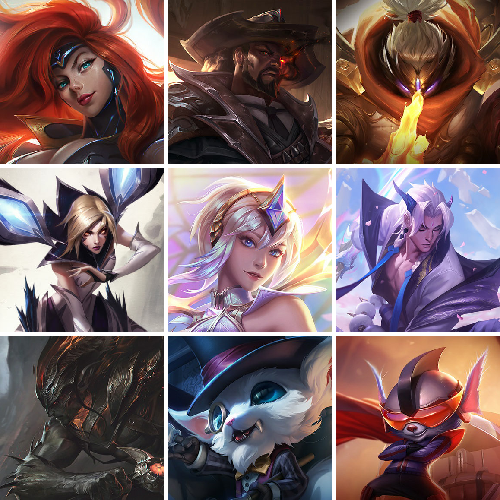 【重要头像】KDA萨勒芬妮 星守卡莎炫彩 青花瓷伊泽瑞尔炫彩 北极星神黛安娜 可爱悠米 魔女莫甘娜炫彩 至臻魔女乐芙兰 至臻战斗学院蕾欧娜 至臻福牛守护者菲奥娜 至臻星之守护者索拉卡 至臻KDa卡莎