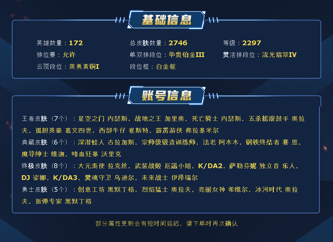 艾欧尼亚丨果壳丨可排位丨2609皮丨玉剑男女刀丨DWG套丨EDG套签名丨龙瞎丨至高天套丨西部魔影丨