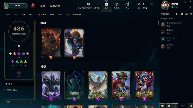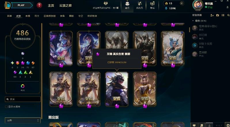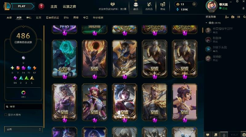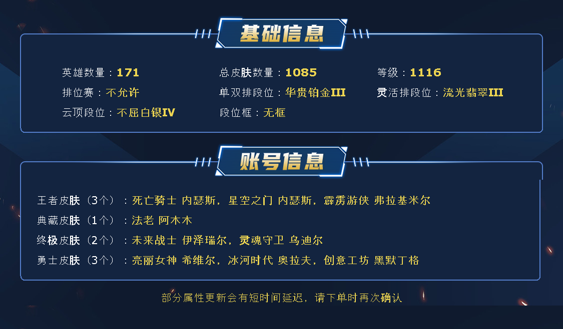 黑色玫瑰丨全英雄丨1066总皮丨可排位丨未来战士丨灵魂守卫丨至臻永恩丨请勿挂机谢谢
