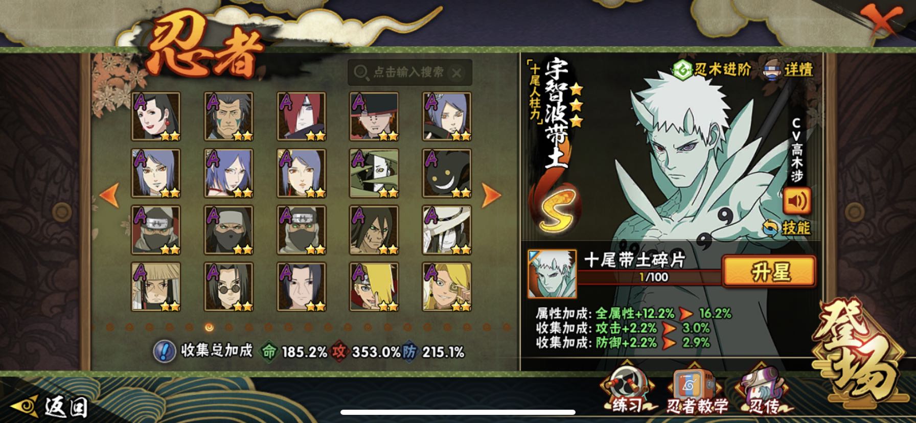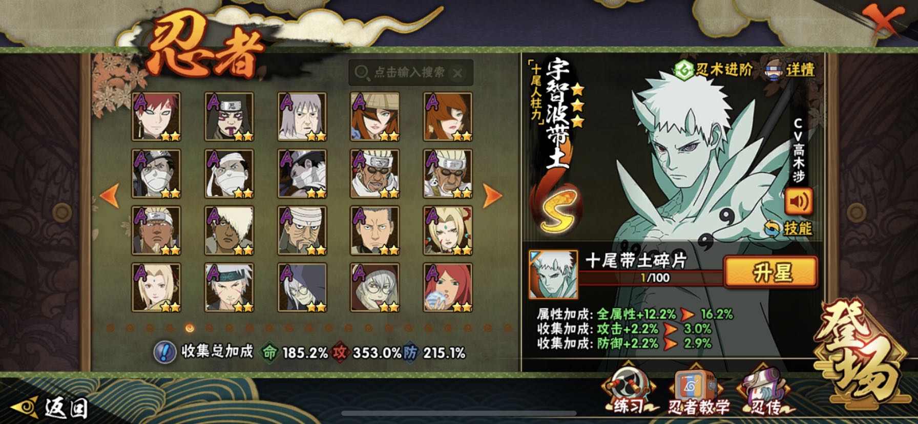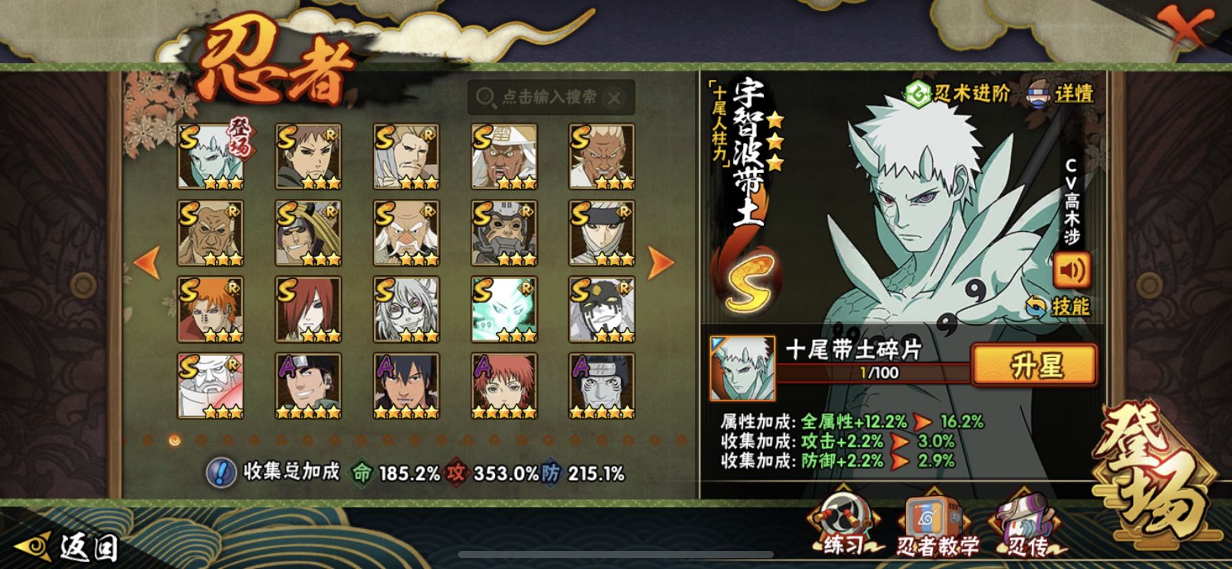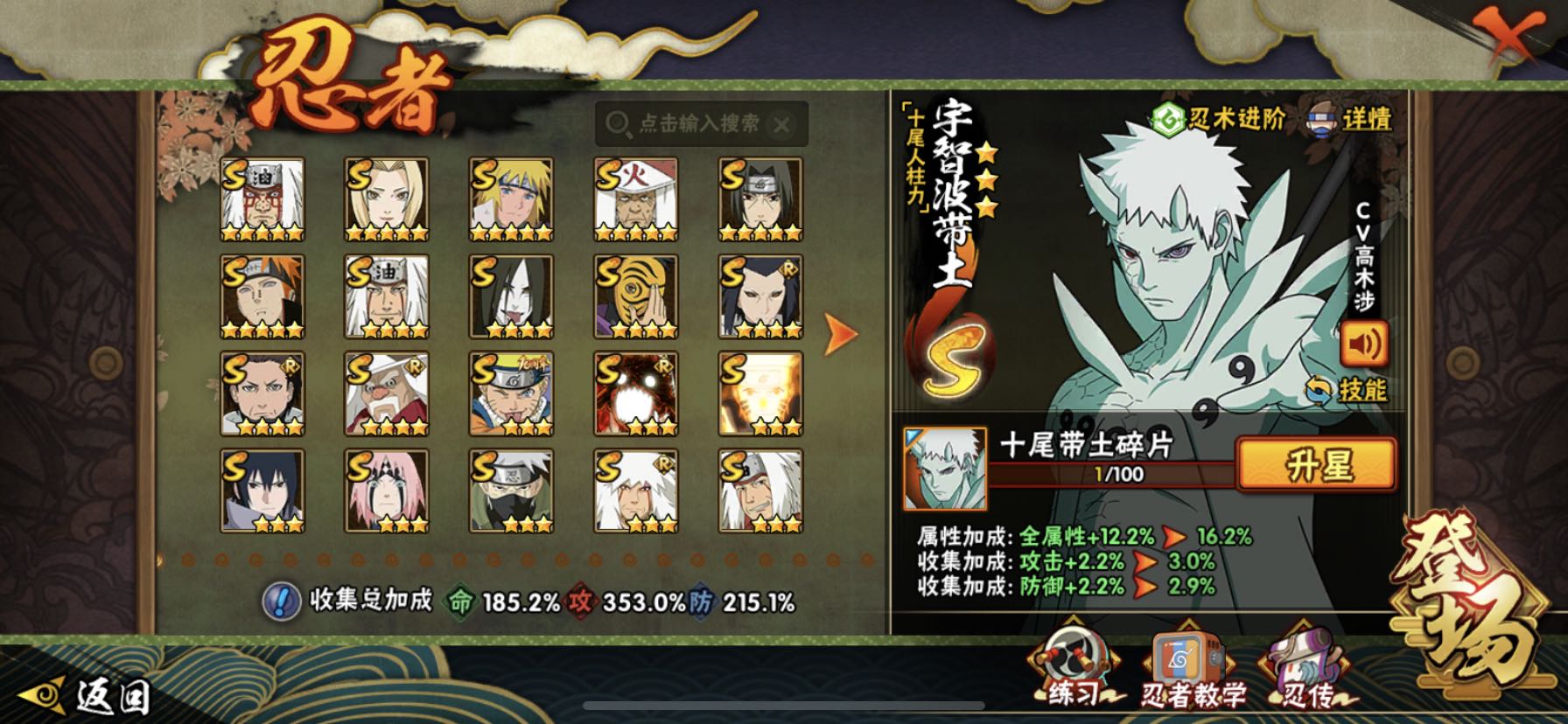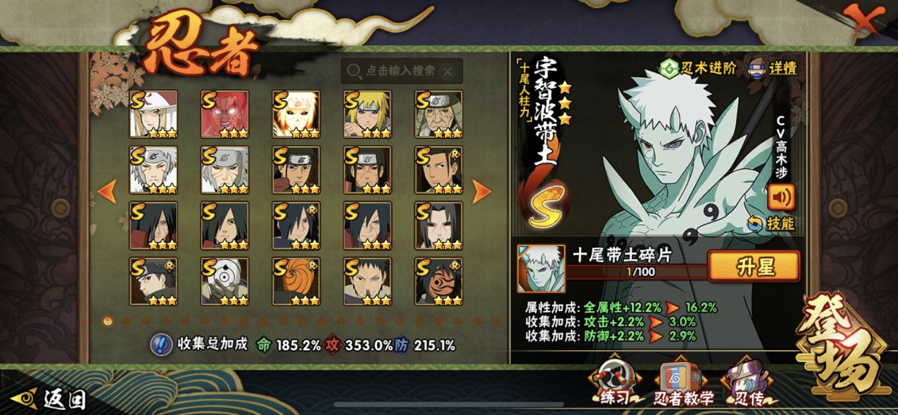 50S 91A 400忍者全通灵黑绝 全者 天道超 秽土柱间 飞段「晓创生」百战宇智波鼬「须佐能乎」神农「羁绊」烈斗「初代目风影」夏日黑土香燐