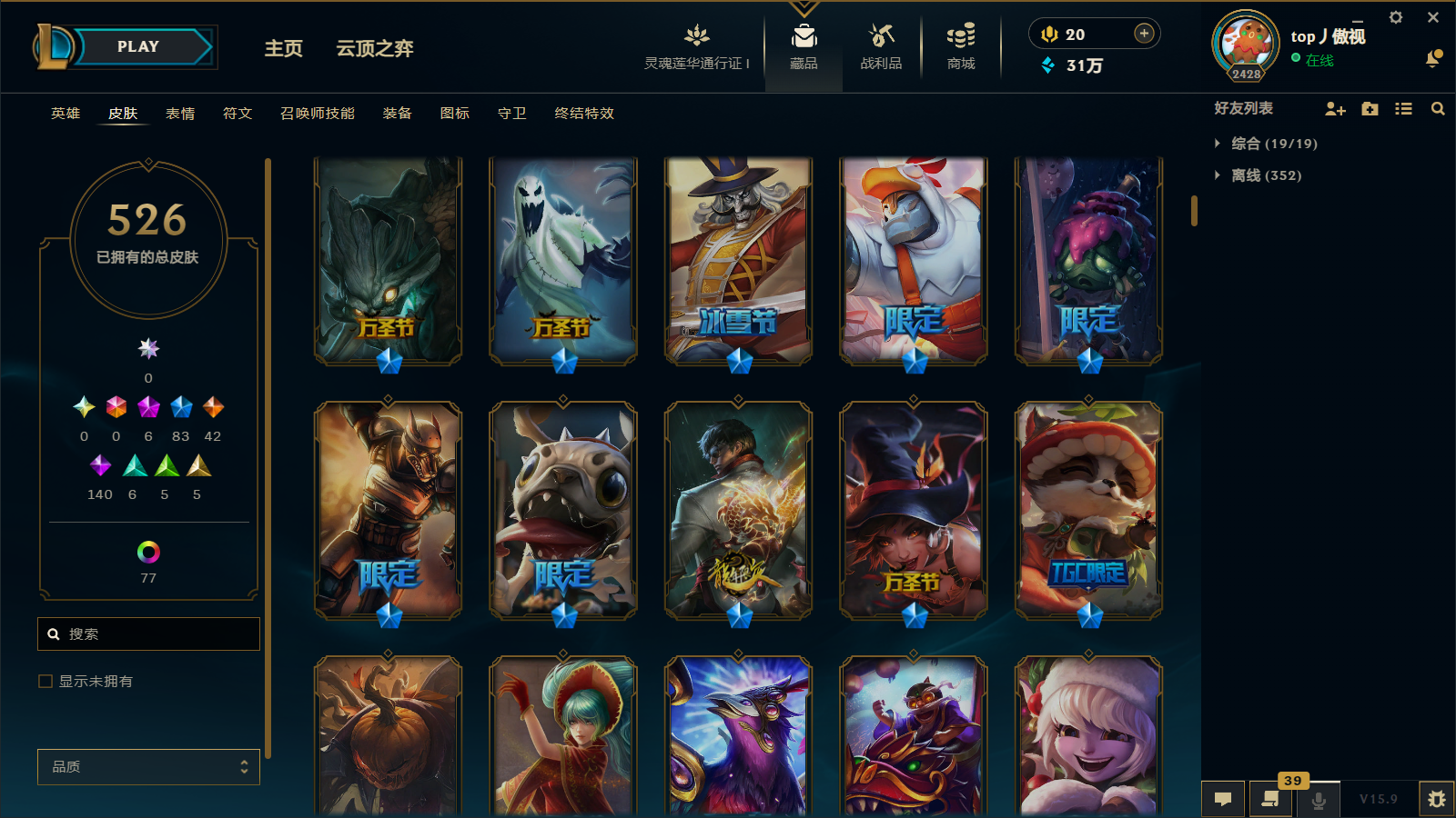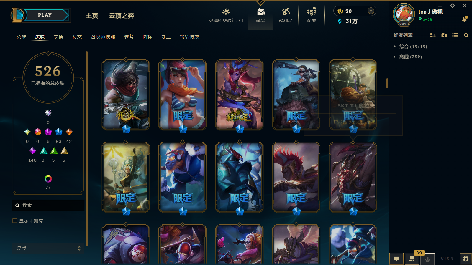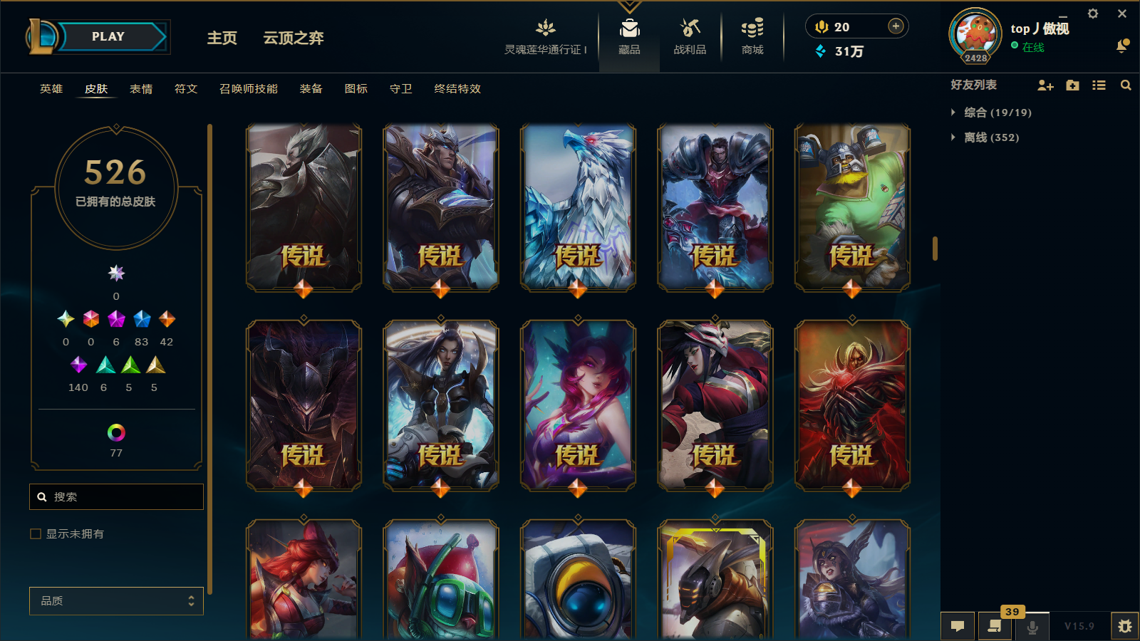 (全英雄可打字可排位)610皮肤龙瞎龙刀神王诺手神王盖伦黑夜亚索黎明瑞雯鸡里奥冠军劫奥德赛亚索
