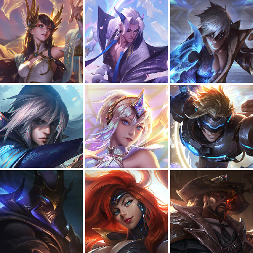 【重要皮肤】剪纸仙灵卡西奥佩娅至臻 T1杰斯至臻 北极星钢影卡蜜尔至臻 魔女阿卡丽至臻 DRX亚托克斯至臻 至高天奎桑提至臻 魅惑女巫莫甘娜至臻 战斗学院蕾欧娜至臻 魔女乐芙兰至臻 星之守护者索拉卡至臻 灵能特工伊泽瑞尔至臻 源计划逆流塞拉斯至臻 王国机神玄武盖伦至臻 黑夜使者凯隐至臻 神龙尊者均衡之龙沃利贝尔至臻 征服者贾克斯至臻 飞升战神潘森至臻 KDA二代卡莎至臻 KDA一代卡莎至臻 KDA阿狸至臻 烈焰美人薇恩至臻 烈焰美人薇恩2022至臻 绒毛菲兹至臻 玉剑传说武剑仙至臻 玉剑传说武剑仙2022至臻 腥红之月亚托克斯至臻 未来战士锤石至臻 未来战士锤石2022至臻 水晶巫灵泽拉斯 灰烬骑士派克 海克斯科技雷克顿 海克斯科技斯维因 海克斯科技吉格斯 新卧虎藏龙贾克斯 水晶掠夺者卡兹克 黎明使者卡尔玛 零之枪骑赫卡里姆 摄魂使者薇恩 新创战纪希维尔 胜利剑圣易 胜利女神娑娜 胜利之王泰达米尔 胜利巨口克格莫 创星之灵璐璐 电玩女神厄运小姐 电玩勇者锐雯 电玩女神阿狸 星之守护者伊泽瑞尔 玉剑传说无影 玉剑传说舞剑仙 玉剑传说神机花火 玉剑传说翼剑仙 天龙之子斯莫德 剪纸仙灵艾瑞莉娅 替父从军花木兰 春晖神女拉克丝 你看见过我的熊猫吗安妮 北辰之威内瑟斯 南天之怒沃里克 美猴王孙悟空 定海神珍孙悟空 紫金罗刹莫甘娜 司马懿仲达 纳财大帝塔姆 王国机神青龙德莱文 王国机神朱雀蕾欧娜 王国机神苍狼瑟提 王国机神白虎贾克斯 胜利机器人布里茨 幽梦玫瑰伊莉丝 甜心之翎洛 觅心女王艾希 觅心之翼奎因 觅心猫猫悠米 觅心猎手薇恩 寒冬精灵璐璐 冬季仙境奥莉安娜 冰雪风暴希维尔 持胡萝卜的雪人易 狂心冰王图奇 冰封王子蒙多 魄罗骑士瑟庄妮 夺命美人卡特琳娜 平安夜女神娑娜 圣诞糖果棒厄运小姐 魅惑女巫崔丝塔娜 大魔王提莫 克烈古拉伯爵 泳池派对普朗克 泳池派对嘉文四世 泳池派对厄运小姐 泳池派对李青 泳池派对蕾欧娜 泳池派对雷克顿 御星魔矢艾希 制胜金球拉莫斯 EDG厄斐琉斯 FPX薇恩 iG乐芙兰 SKTT1扎克 SKTT1辛德拉 SKTT1奥拉夫 SKTT1阿利斯塔 SKTT1瑞兹 SKTT1伊莉丝 SKTT1雷克顿 SSW图奇 SSW辛吉德 SKTT1贾克斯 SKTT1薇恩 暗杀星蒙多 暗杀星努努和威朗普 暗杀星慎 Fnatic迦娜 Fnatic库奇 Fnatic古拉加斯 Fnatic嘉文四世 冰雪节辛吉德 防暴士兵格雷福斯 防暴士兵辛吉德 防暴天使凯尔 冠军典狱长锤石 冠军掠夺者卡兹克 冠军蔷薇乐芙兰 冠军之刃锐雯2016 冠军之血希瓦娜 冠军之隐劫 鬼影森森茂凯 红桃杰克崔斯特 胡桃夹子萨科 惊悚派对费德提克 警用试作体K9内瑟斯 密林猎手提莫 破空枪骑孙悟空 圣诞精灵崔丝塔娜 圣诞开心鬼提莫 圣诞狂欢基兰 圣诞狂欢努努和威朗普 圣诞玩偶波比 圣诞驯鹿克格莫 外星装甲库奇 卧虎藏龙贾克斯 无头骑士赫卡里姆 幸福女神乐芙兰 雪默丁格 野兽猎人德莱文 野兽猎人泰达米尔 英勇玩具兵普朗克 永恒之森乐芙兰 勇者阿狸 勇者奈德丽 征服者阿利斯塔 征服者韦鲁斯 暗影沃里克 冠军之箭艾希 魅惑女巫菲奥娜 2021全球总决赛嘉文四世 波比的巧克力工坊 都铎王朝图奇 十五周年纪念希维尔 十周年纪念安妮 源代码乐芙兰 神凰行者瑞羽圣凰艾尼维亚 大元素使拉克丝 未来战士伊泽瑞尔 武装战姬厄运小姐