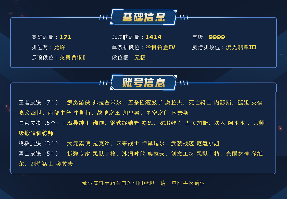 ~~喜欢记得收藏~~可排位~~1388皮全英雄~~租之前尽量查一下游戏ID,确保段位是您需要的,避免浪费您的时间~~请勿挂机逃跑故意送人头,谢谢合作,谢谢~~