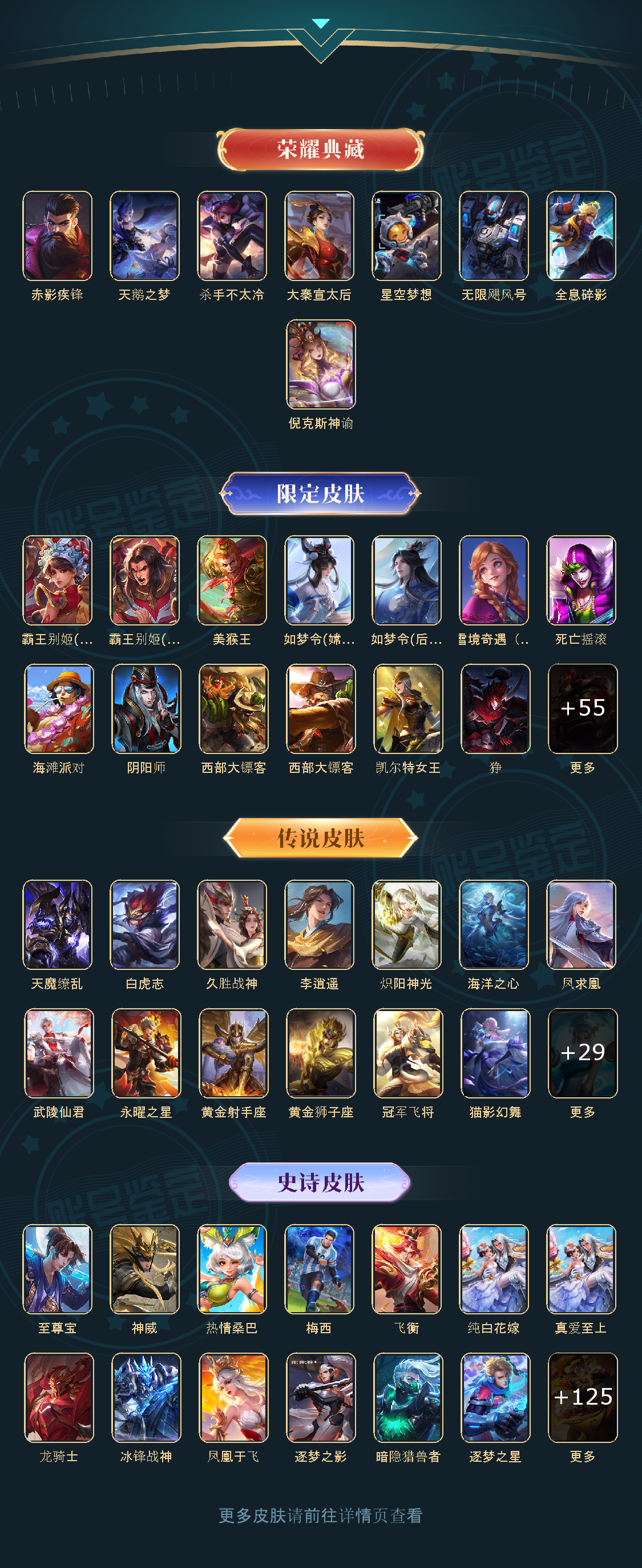 冰锋战神/街头霸王/天鹅之梦/纯白花嫁/天魔缭乱/至尊宝/杀手不太冷/真爱至上/王者之锤/大秦宣太后/凤求凰/热情桑巴/逐梦之影/武陵仙君/神奇女侠/星空梦想/梅西/无限飓风号/黄金狮子座/一生所爱/全息碎影/大圣娶亲/冰霜恋舞曲/青龙志/白虎志/朱雀志/太华/久胜战神/飞衡/梁祝/倪克斯神谕/白鹤梁神女/龙胆/李逍遥/武圣/奔雷神使/神威/淬星耀世/时雨天司