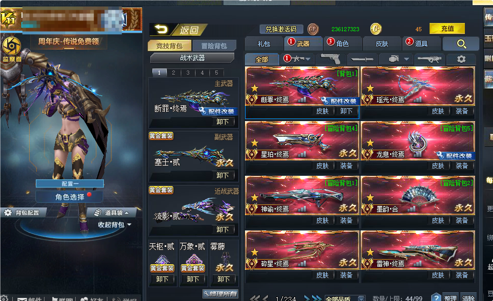 流影贰断罪终焉 星珀终焉/星魄终焉 龙息终焉满配 神谕终焉 墨韵合 碎星终焉 雷神终焉 影魔 无尽终焉*4 无限ex rpk主宰 ak47主宰