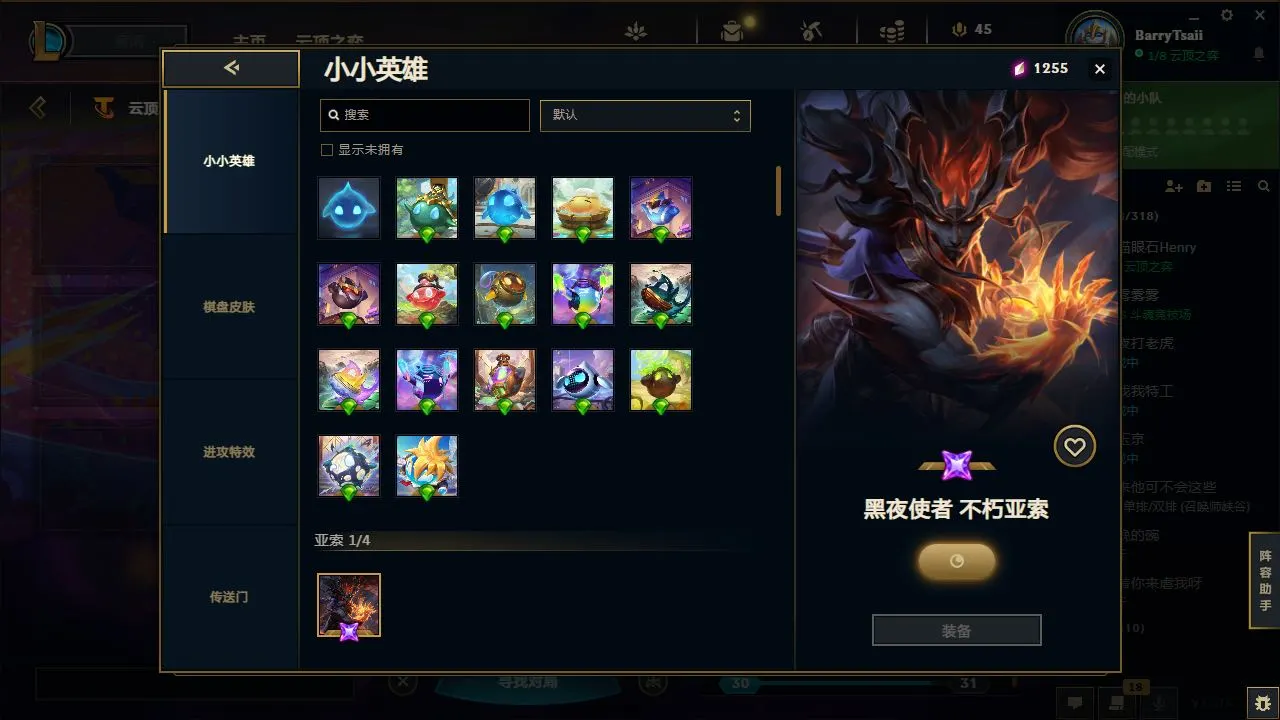 艾欧尼亚 流光翡翠段位🍒全球总决赛限定T1小小奥丽安娜 黑夜使者不朽亚索 峡谷600张原皮