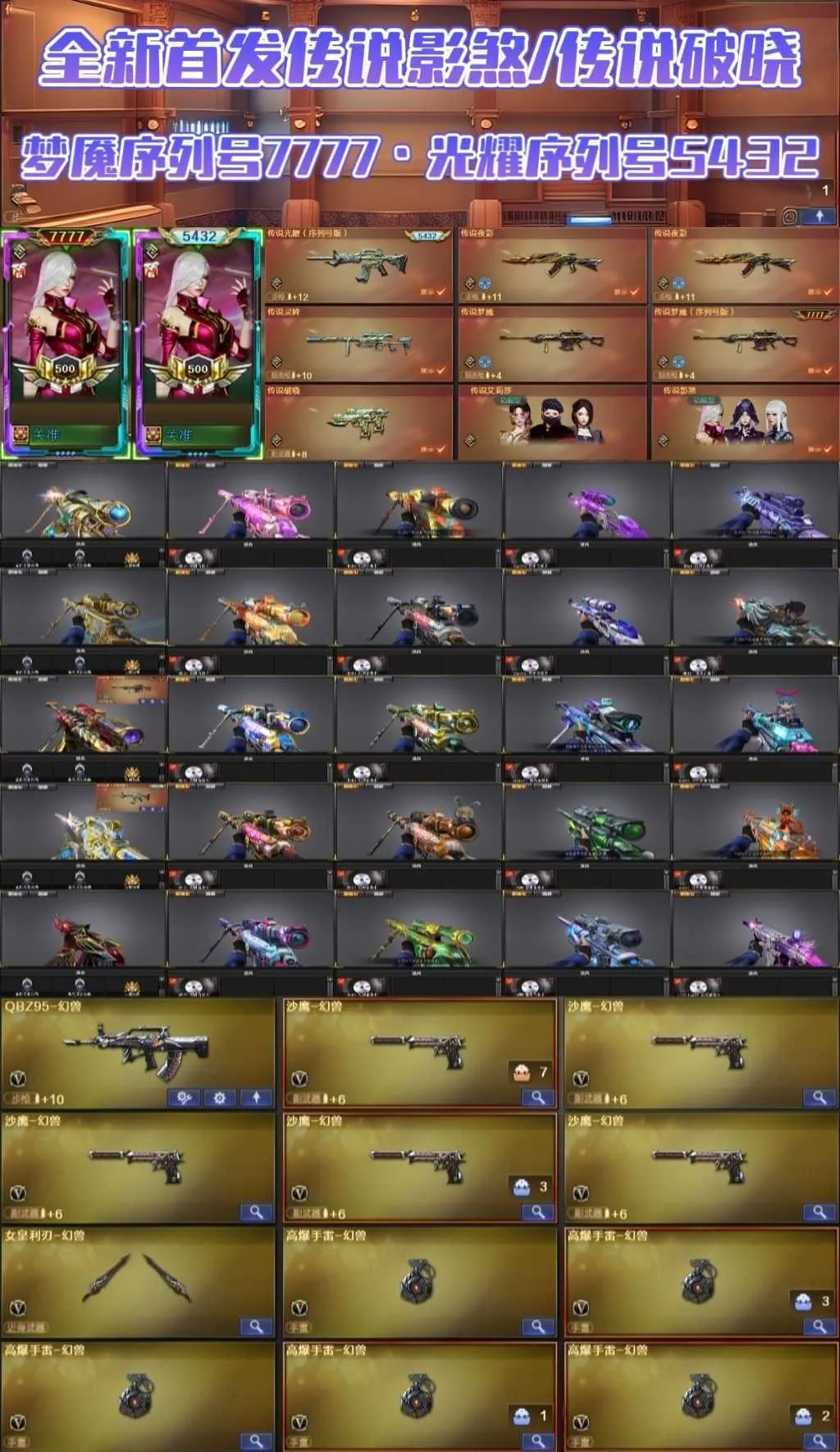 【允许排位】影煞破晓7777豹子顺子幻兽灵眸十二皮幻卡③皮星神卡③皮裁决卡蝶刃艾莉莎薇特刃枪娘宠儿N9全音效副武