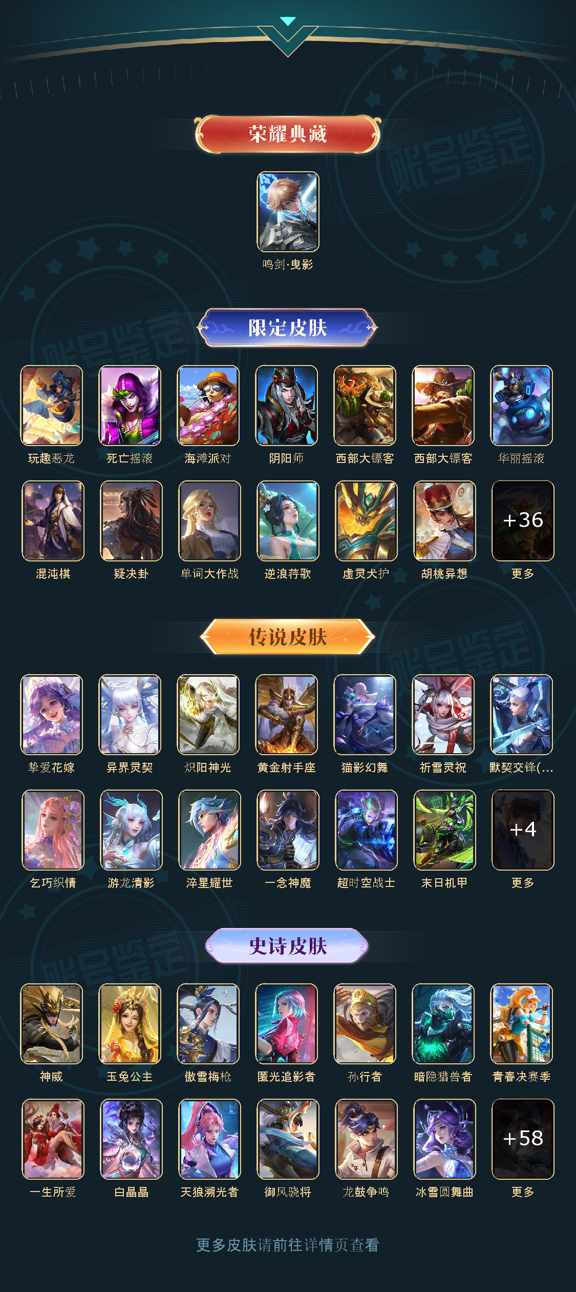 纯白花嫁/天魔缭乱/至尊宝/真爱至上/圣诞老人/热情桑巴/梅西/青龙志/白虎志/朱雀志/久胜战神/飞衡/匿光追影者/鸣剑·曳影/星域神启/李逍遥/武圣/玉兔公主/补天/异界灵契/神威/启示之音/傲雪梅枪/时雨天司