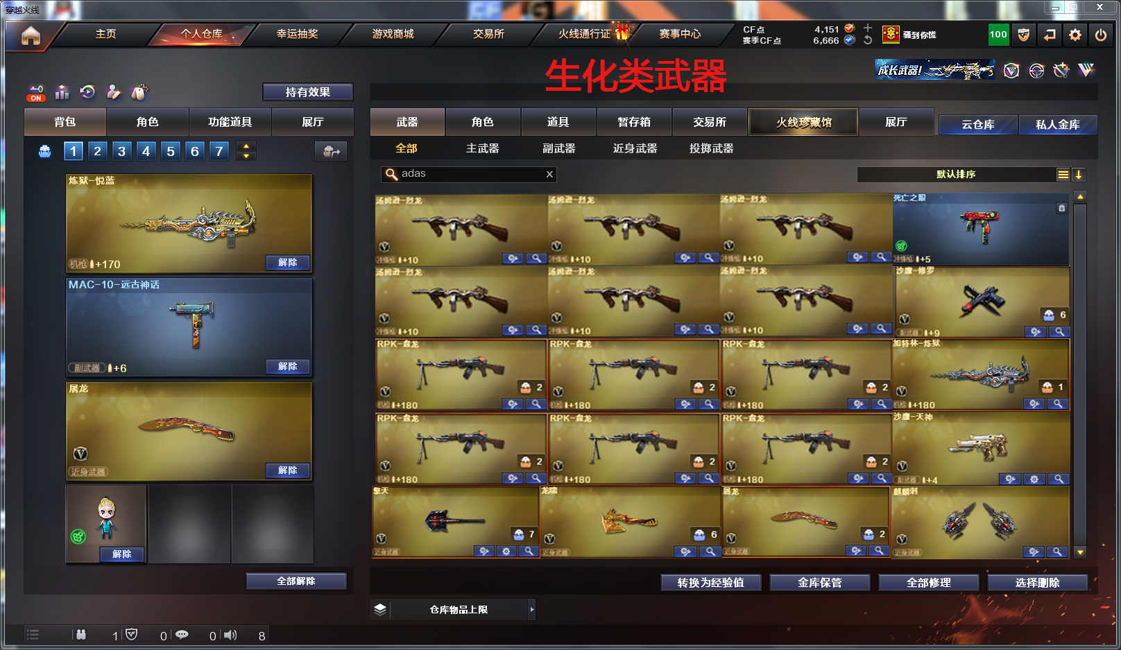 【允许排位】生化号|炼狱|6烈龙|6盘龙|6副|生化背包|全弹夹|生化5技能角色|生化不退包