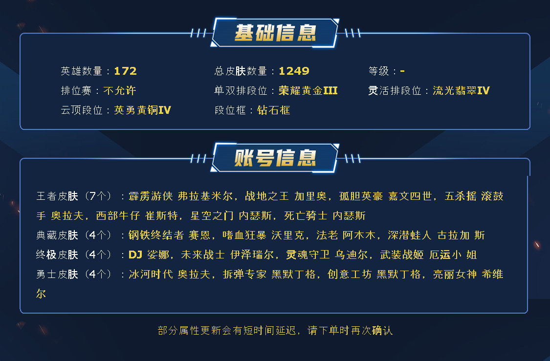 希望各位兄弟珍惜爱护此号,素质游戏,大家千万不要挂机逃跑,当成自己号来玩,输成什么样号主都能接受,如果故意逃跑或挂机肯定拉黑!【重要皮肤】双城之战2指挥官凯特琳至臻 狼神英灵斯维因至臻 暗星女王黛安娜至臻 魔域梦魇泽丽至臻 T1杰斯至臻 西部魔影伊芙琳至臻 DRX亚托克斯至臻 幻灵战斗猫金克丝至臻 魔女乐芙兰至臻 真实伤害亚索至臻 源计划逆流塞拉斯至臻 神龙尊者炎龙瑟提至臻 KDA二代卡莎至臻 绒毛菲兹至臻 黑夜使者李青至臻 殿堂传奇乐芙兰 水晶巫灵泽拉斯 海克斯科技雷克顿 西部魔影炽天使永恩 水晶掠夺者卡兹克 摄魂使者薇恩 胜利剑圣易 胜利女神希维尔 胜利之王泰达米尔 胜利巨口克格莫 舞会公主安妮 钢铁军团拉克丝 巨角幻兽阿利斯塔 勇敢的心德莱厄斯 玉剑传说无影 女帝厄运小姐 点心宝贝阿木木 银龙裁决泰隆 天龙之子李青 天龙之子斯莫德 天龙之子易 你看见过我的熊猫吗安妮 紫金罗刹莫甘娜 张辽文远 神龙之翼库奇 胜利女神奥莉安娜 胜利枪神格雷福斯 胜利枪神卢锡安 胜利之剑亚托克斯 黯然心伤阿木木 水晶玫瑰迦娜 幽梦玫瑰伊莉丝 甜心宝贝娑娜 觅心游侠卢锡安 觅心魔灵奥莉安娜 觅心之翼奎因 觅心猫猫悠米 双城之战2微光实验室辛吉德 冬季仙境奥莉安娜 雪球也能爆炸吉格斯 圣诞老人布隆 冰雪驯鹿波比 持胡萝卜的雪人易 冰雪女神辛德拉 魄罗骑士瑟庄妮 平安夜女神娑娜 圣诞糖果棒厄运小姐 魅惑女巫奈德丽 魅惑女巫伊莉丝 灵魂收割者索拉卡 海之歌泽丽 泳池派对辛德拉 泳池派对菲奥娜 泳池派对格雷福斯 泳池派对李青 泳池派对蕾欧娜 泳池派对雷克顿 御星魔矢艾希 克格汪 制胜金靴李青 T1李青 FPX李青 SSG霞 SSG纳尔 SSG伊泽瑞尔 SKTT1扎克 SKTT1烬 SKTT1辛德拉 SKTT1娜美 SKTT1艾克 SKTT1阿利斯塔 SKTT1卡莉丝塔 SKTT1瑞兹 SKTT1阿兹尔 SSW锤石 SSW雷恩加尔 SSW图奇 SSW辛吉德 SKTT1贾克斯 SKTT1劫 SKTT1婕拉 SKTT1李青 暗杀星奥莉安娜 暗杀星蒙多 暗杀星伊泽瑞尔 暗杀星慎 Fnatic古拉加斯 Fnatic嘉文四世 Fnatic卡尔萨斯 冰雪节玛尔扎哈 冰雪节辛吉德 防暴机器人布里茨 防暴士兵辛吉德 防暴天使凯尔 钢铁之翼艾尼维亚 冠军典狱长锤石 冠军之矛卡莉丝塔 冠军之刃锐雯 冠军之刃锐雯2016 冠军之隐劫 鬼影森森茂凯 鬼影重重魔腾 海贼瑞兹 红桃杰克崔斯特 胡桃夹子萨科 蓝色忧郁崔斯特 魅惑女巫娜美 蒙多蒙多 南瓜头费德提克 女猎手希维尔 圣诞精灵崔丝塔娜 圣诞开心鬼提莫 圣诞狂欢基兰 圣诞狂欢努努和威朗普 圣诞老人古拉加斯 圣诞玩偶波比 圣诞驯鹿克格莫 糖果使徒费德提克 外星装甲库奇 无头骑士赫卡里姆 喜庆之树茂凯 幸福女神乐芙兰 雪默丁格 雪装奈德丽 野兽猎人泰达米尔 英勇玩具兵普朗克 暗影沃里克 冠军之箭艾希 机械迷城加里奥 魅惑女巫辛德拉 诺斯费拉图弗拉基米尔 战场BOSS吉格斯 阿木木主人不要我了 波比的巧克力工坊 都铎王朝图奇 十五周年纪念希维尔 十周年纪念安妮 源代码乐芙兰 斗魂觉醒佛耶戈 暗裔英雄盖伦 DJ娑娜 灵魂守卫乌迪尔 未来战士伊泽瑞尔 武装战姬厄运小姐